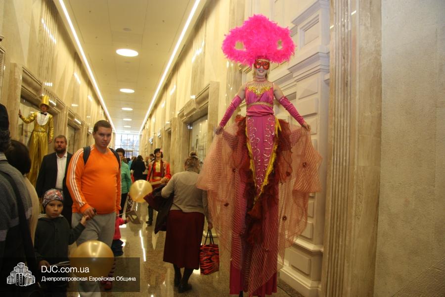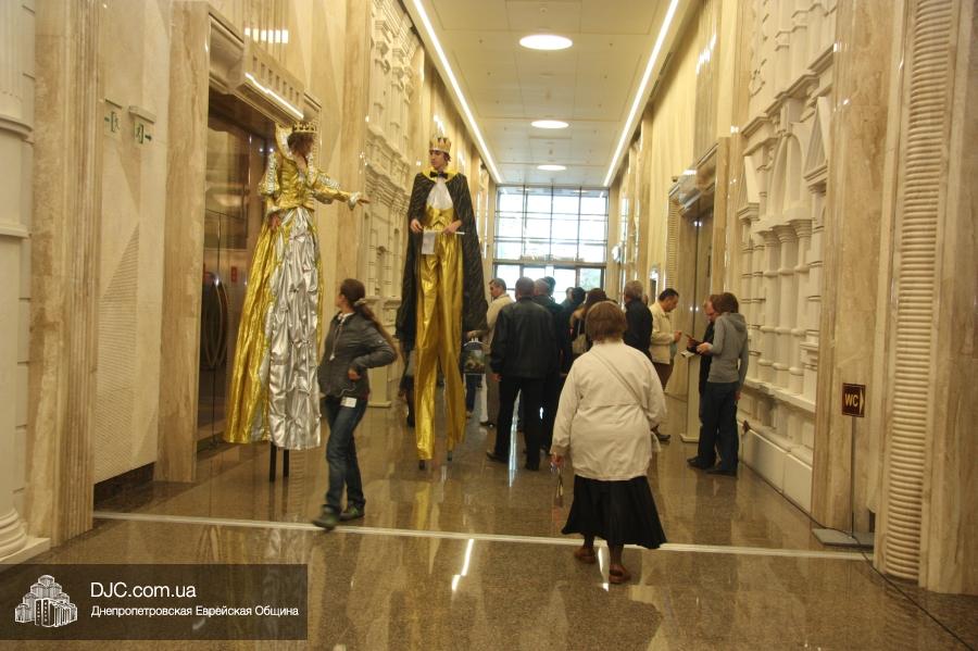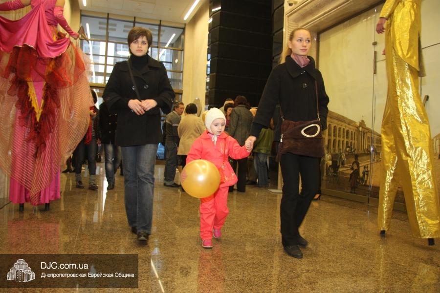Впрочем, каждому, кто переступил порог «Меноры» в этот день предстояло попасть в сказку – по галерее разгуливали трехметровые великаны – феи, эльфы и казаки. Широкая двухэтажная Галерея центра превратились в узкие улочки старого города, проходя по которым можно было заглянуть в мастерскую портного или сапожника, заказать портрет у уличного художника и даже привести в порядок обувь у чистильщика – здесь проходил фестиваль, посвященный старому Екатеринославу. Даже звучавшая музыка была непривычной для современного горожанина – здесь играл известный в Украине клейзмерский оркестр «Пушкин-бенд», и танцевали также почти ставшие сказочными персонажами местечковые евреи.
