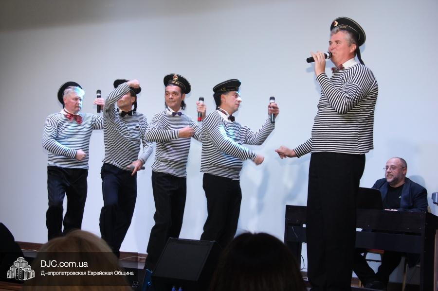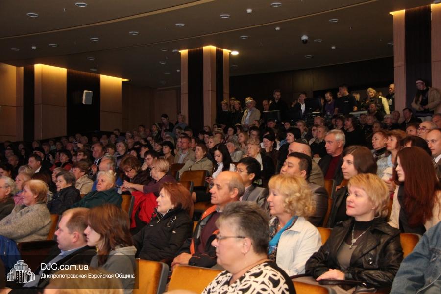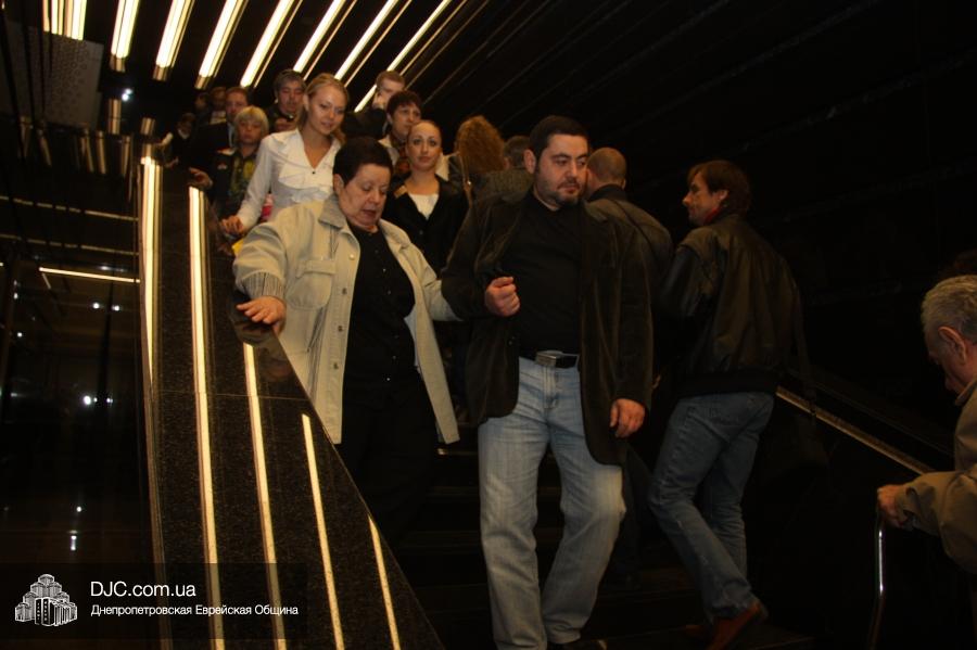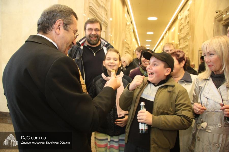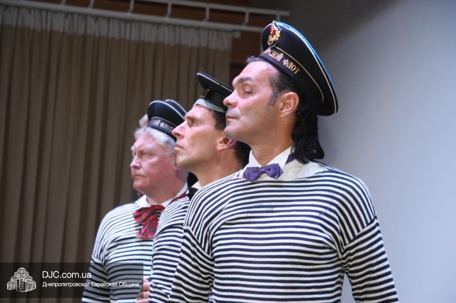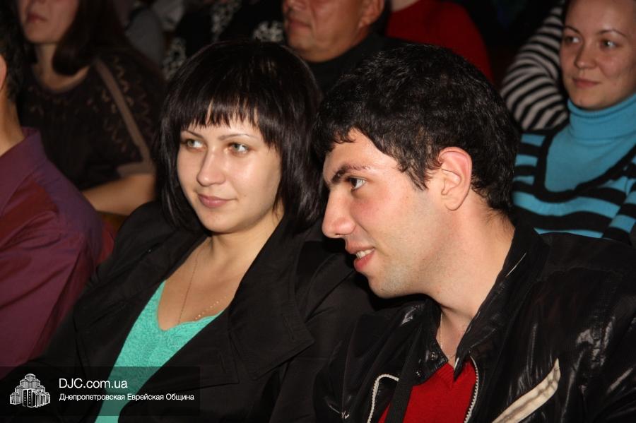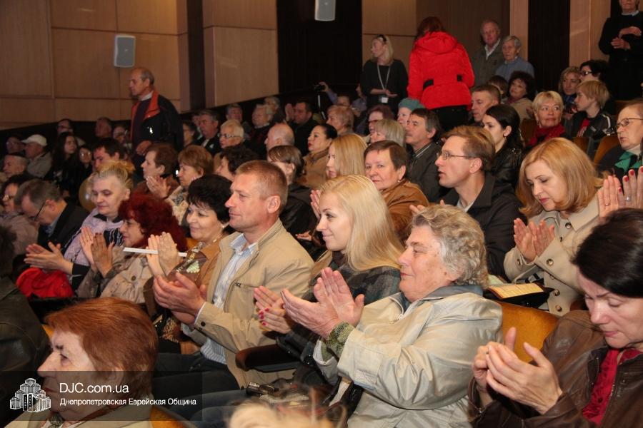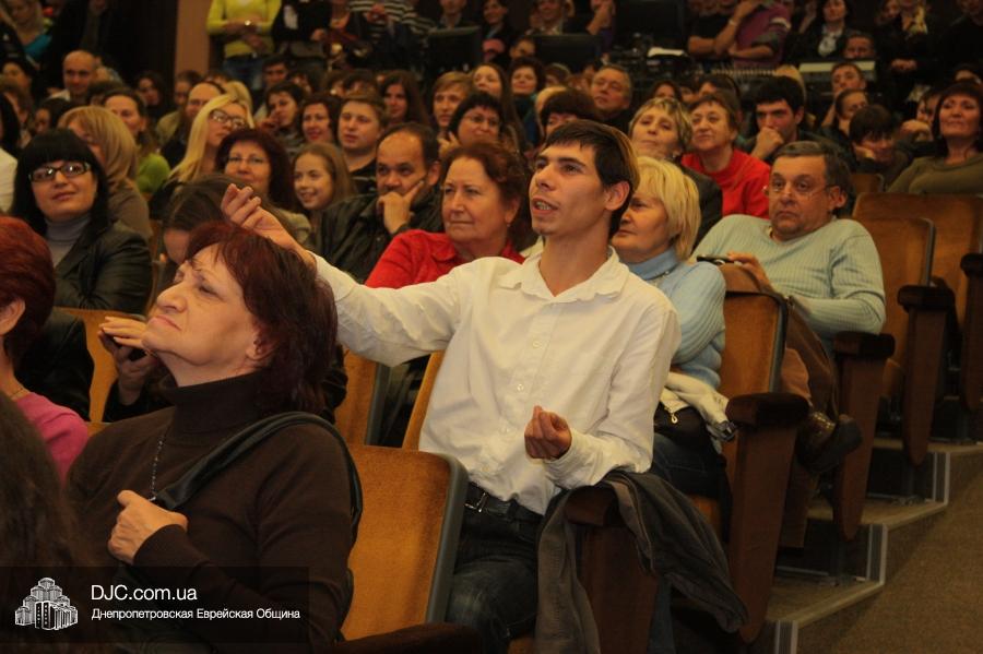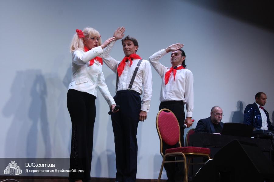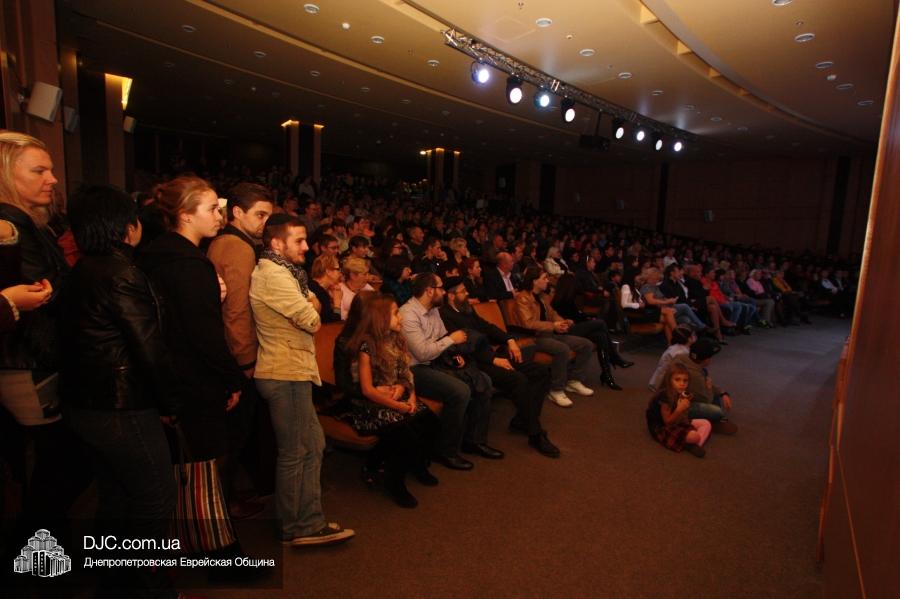 Кульминацией праздника стало выступление «Театра КВН ДГУ», которое прошло с аншлагом – зал «Синай» не мог вместить всех желающих на своих 320 креслах, и многие стояли и сидели в проходах, и даже на полу перед сценой. Артисты показали отрывки из своей программы «Кабаре «Веселый ПесецЪ». Вместе с «примадоннами» Театра на сцене находились и их замечательные музыканты во главе с неподражаемым Евгением Гендиным, и даже «красотки кабаре» из танцевального коллектива «Ка-данс» (из уважения к публике они были в этот раз одеты в наряды хоть и яркие, но все же скромных фасонов). Поздравить днепропетровчан с открытием «Меноры» вышел и обычно остающийся за кулисами автор и художественный руководитель Театра Григорий Гельфер, а режиссер и актер «Театра КВН ДГУ» Евгений Чепурняк пригласил всех присутствующих на празднование 25-летия творческой деятельности их коллектива, которое, скорее всего, состоится в «Меноре» 1 декабря.