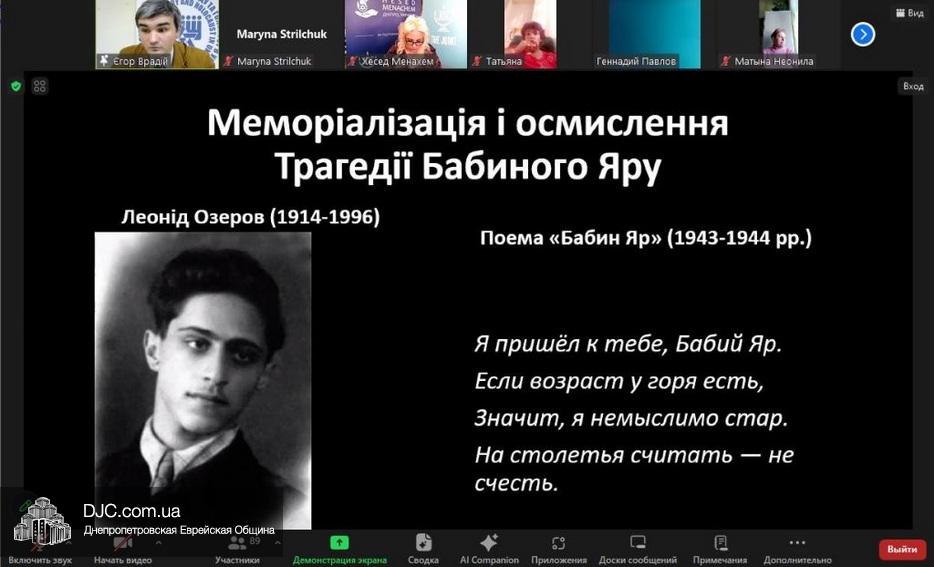 Музей «Память еврейского народа и Холокост в Украине» в рамках этого дня, организовал серию мероприятий, посвященных памяти жертв Холокоста. В течение недели проходили тематические экскурсии и музейные занятия. А 29 сентября состоялся специальный показ художественного фильма «Дамский портной», снятого украинским режиссером Леонидом Горовцом в 1990 году по пьесе Александра Борщаговского. Следует отметить, что специально к этой дате сотрудниками Музея был сделан перевод фильма и подготовлены субтитры на украинском языке.