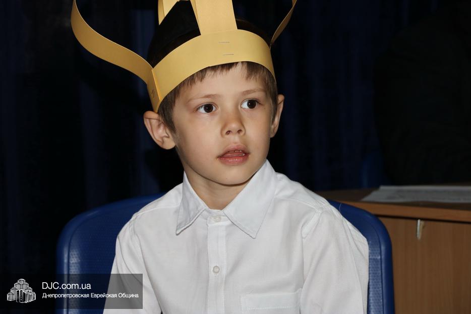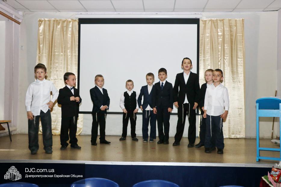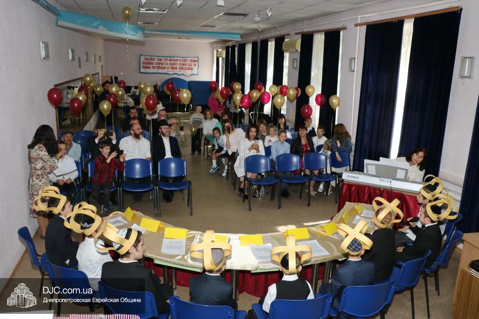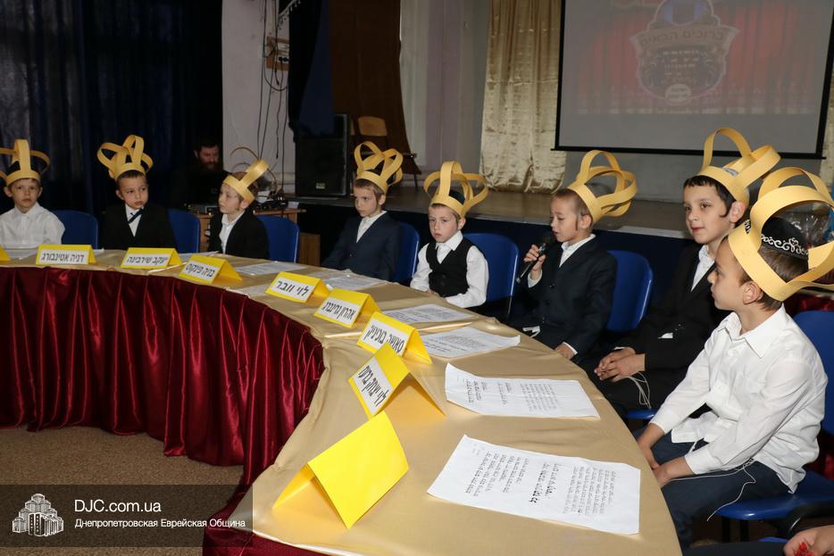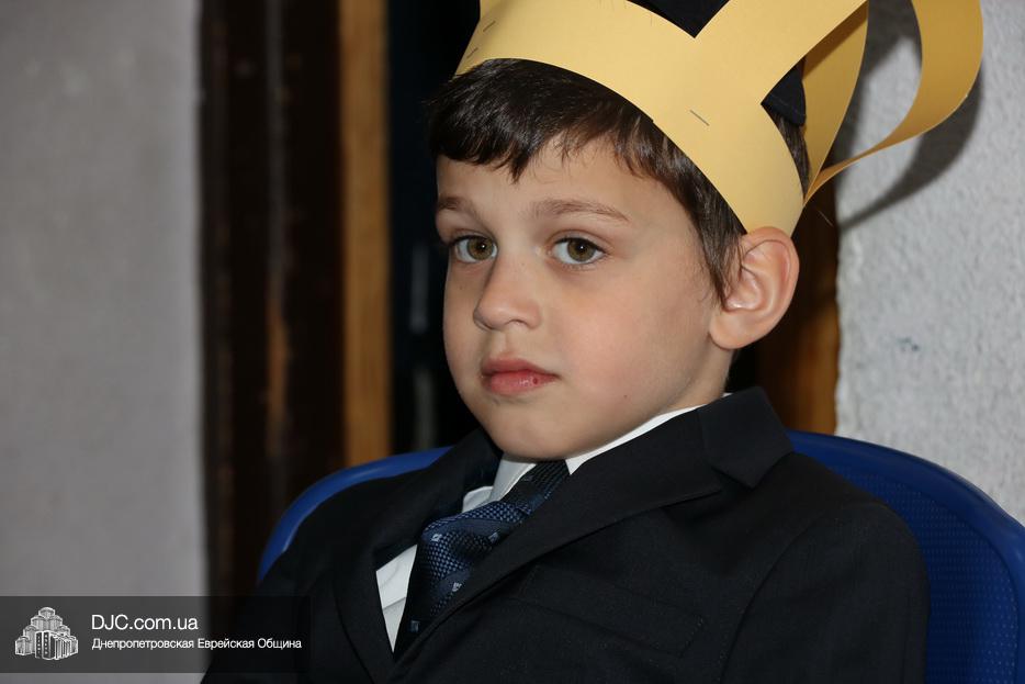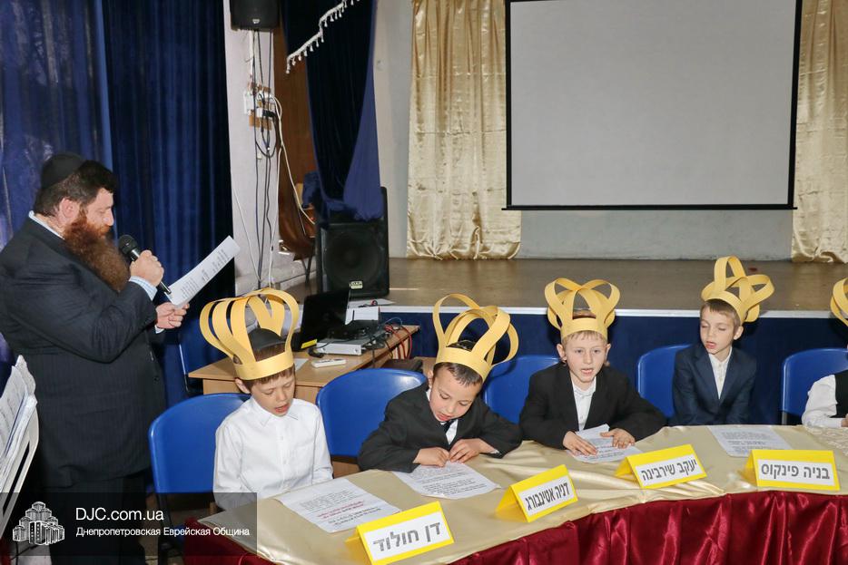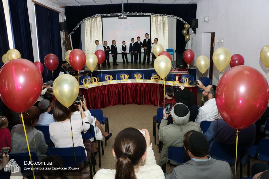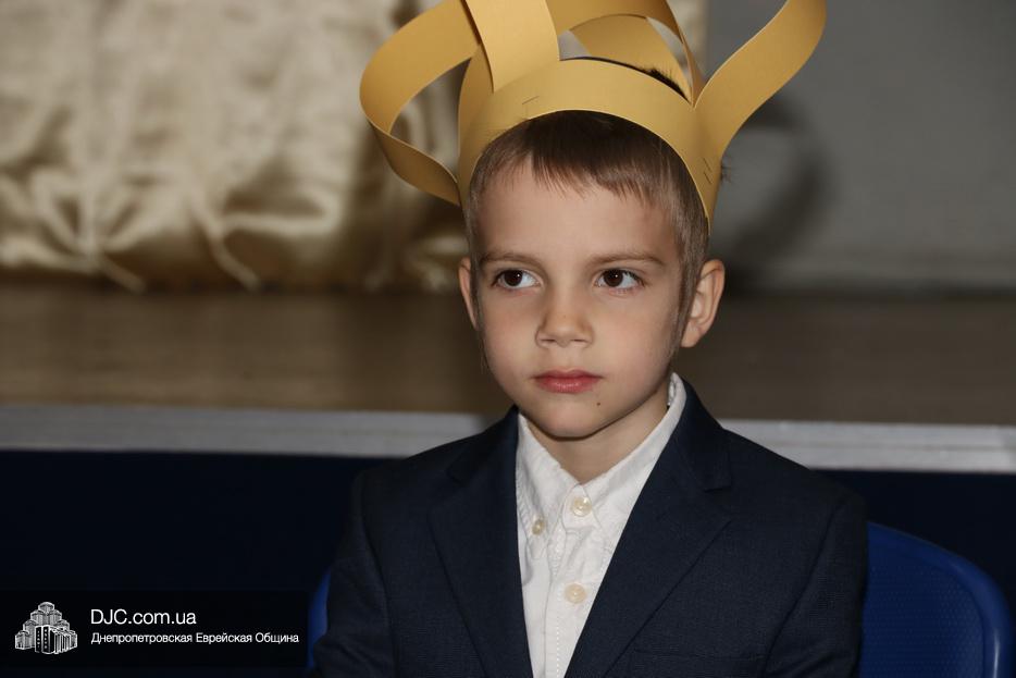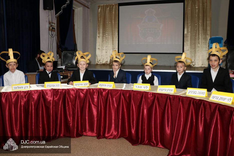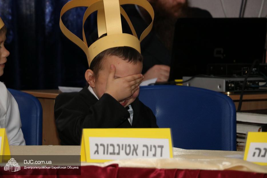 В актовый зал иешивы первоклассники вошли строем, в коронах, как и положено юным королям, и перед восхищенными родителями продемонстрировали свои знания и умения, которые они приобрели занимаясь в иешиве. Тут были и псуким, и хореографические этюды, и театральные сценки, выражавшие искреннюю любовь к Торе и заповедям.