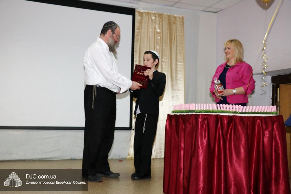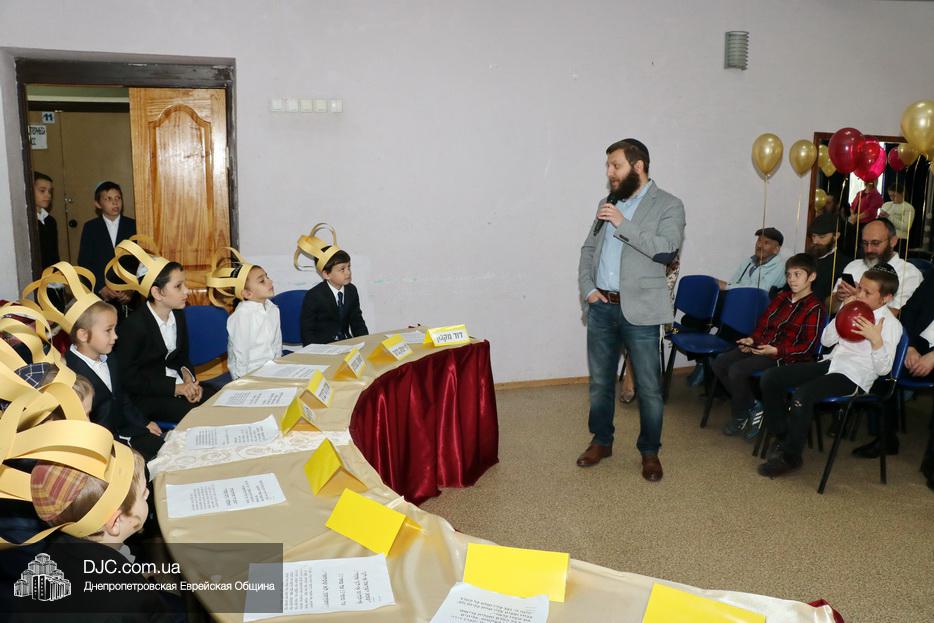 Детей тепло поздравили их родители, учителя, а рош-иешивы раввин Реувен Чупин, кроме теплых слов поздравления, вручил каждому мальчику персональный, именной Хумаш и другие подарки, подготовленные иешивой-ктана.
