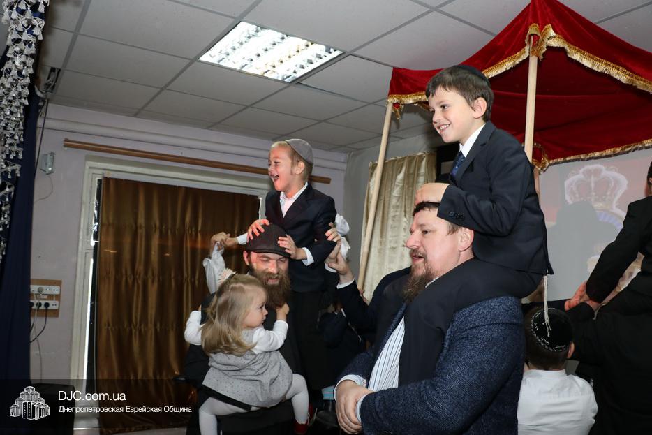 Затем дети вместе с папами весело танцевали акафот под свадебным балдахином – Хупой, на радость мамам и сестрам, а завершением вечеринки стал «сладкий стол» с любимыми детьми кошерными угощениями.