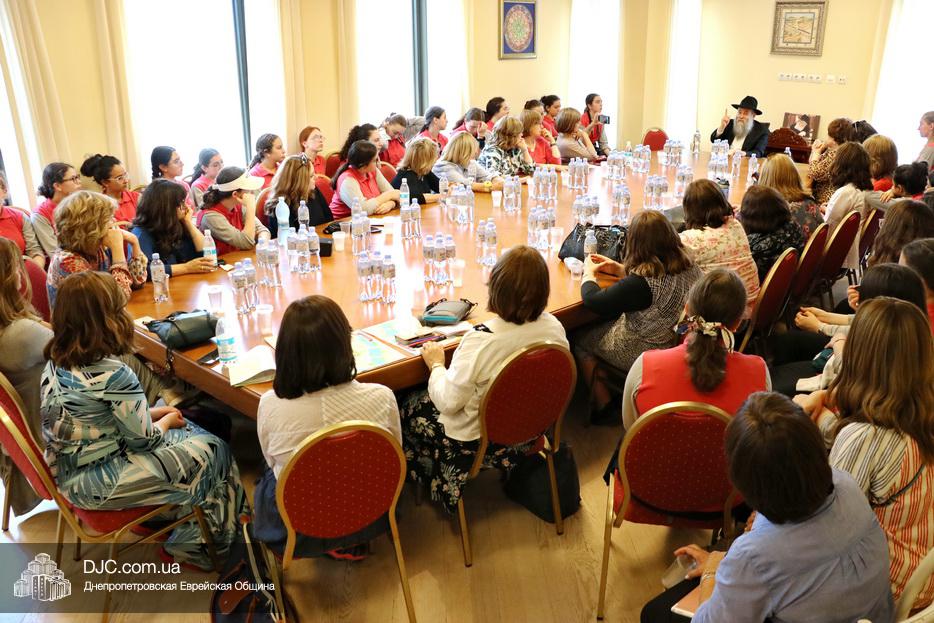 Главный раввин Днепра и региона Шмуэль Каминецкий тепло приветствовал участниц лагеря и их преподавателей, в том числе и организатора этой важнейшей мотивирующей программы для еврейских девочек госпожу Мирьям Свердлову, и рассказал им о значении Днепра для еврейской истории и еврейского народа в глобальном измерении, а также о том, как в Днепре воплощают в жизнь указания Любавического Ребе, которые он поставил перед своими посланниками.