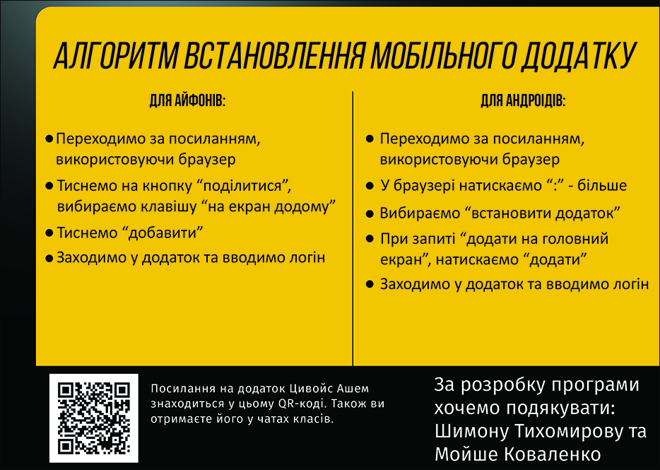 Для установки приложения необходимо ознакомится с инструкцией и перейти по ссылке: https://node-red.nrst.pp.ua:1880/tsivos/student/main.html.