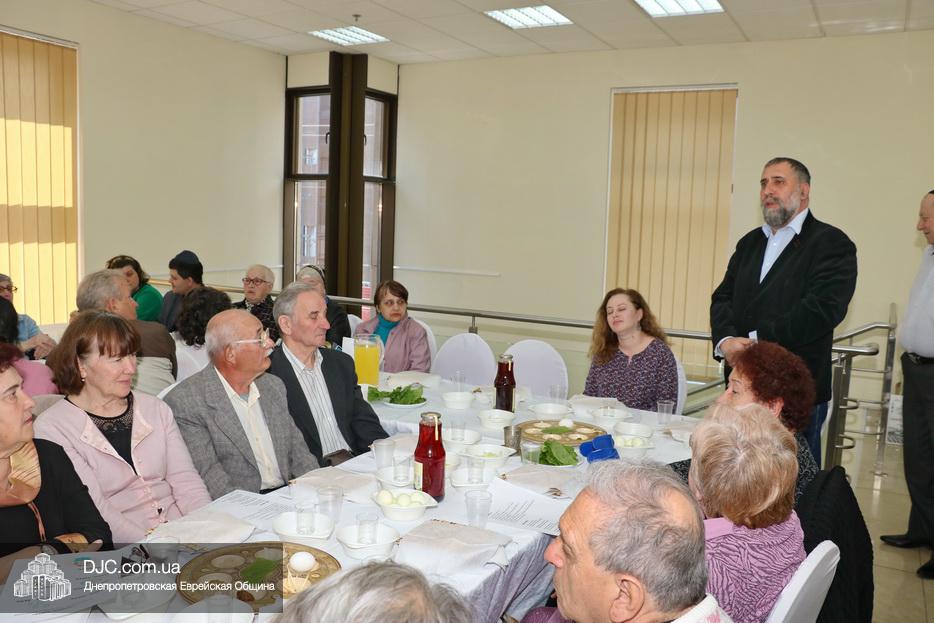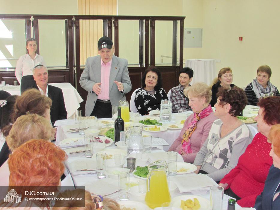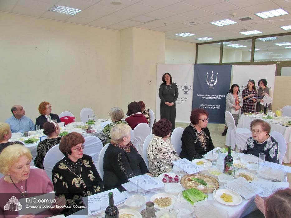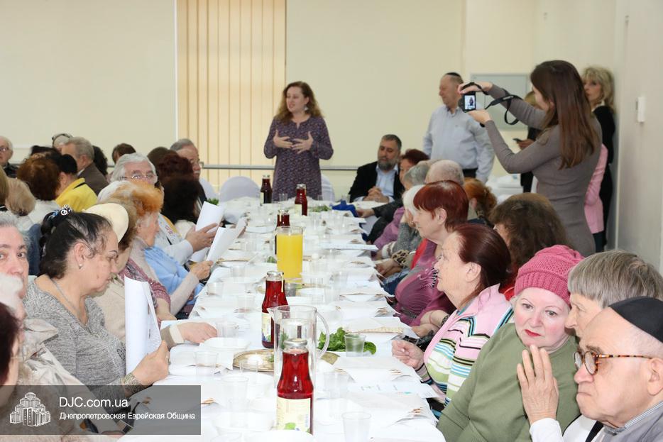 Пожилых евреев Днепра тепло поздравили директор «Хеседа Менахем» Анатолий Плескачевский и член Попечительского Совета, президент фонда «Шиурей Тора Любавич» Натан Золотаревский, который выступил основным спонсором проведения модельных седеров в этом году. Также участников программ Хеседа поздравили представители руководства «Джоинта», еврейской общины, известные писатели и общественные деятели.