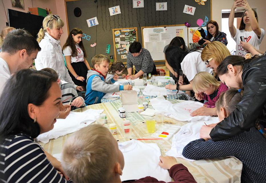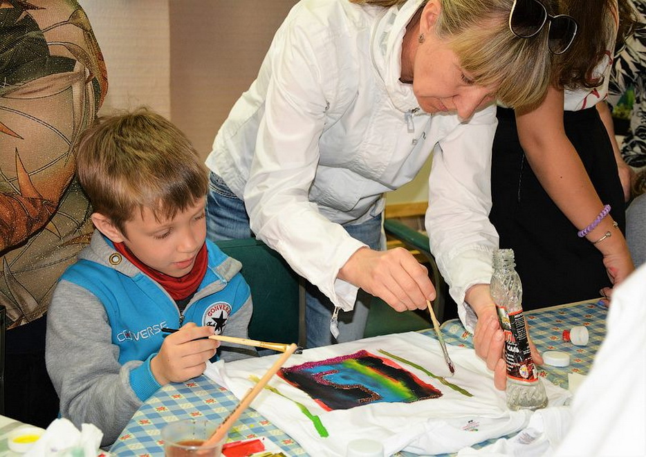 Программа началась с легкой физической разминки в патио ОРЦ, где с помощью новых друзей дети приняли участие в мыльном шоу. После этого девушки-волонтеры провели мастер-класс по созданию собственной футболки «Нарисуй свою мечту». Мечты были разными! Кто-то мечтал о машине, кто-то – о поездке на море, о хороших оценках, о дружбе и любви окружающих людей. Не всем удалось идеально изобразить мечту, но главное – рядом были неравнодушные люди, которые спрашивали детей: «О чем ты мечтаешь?».