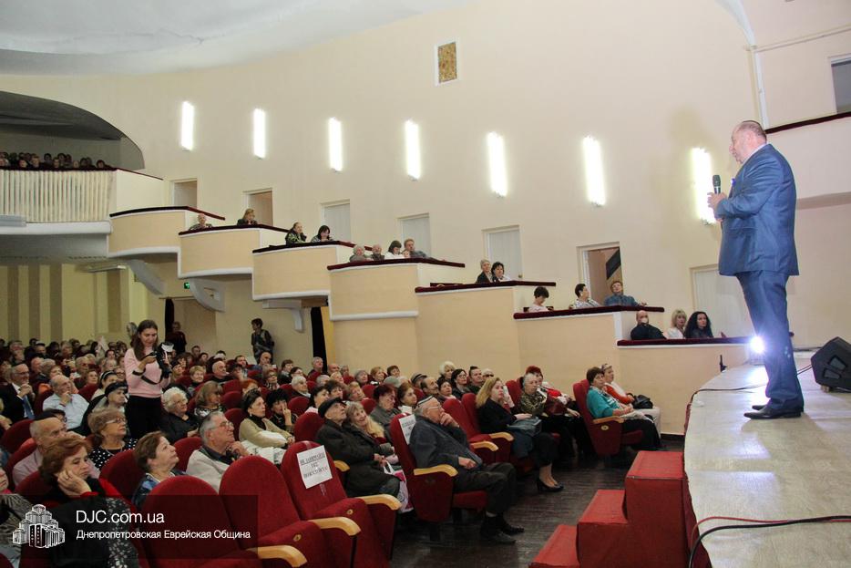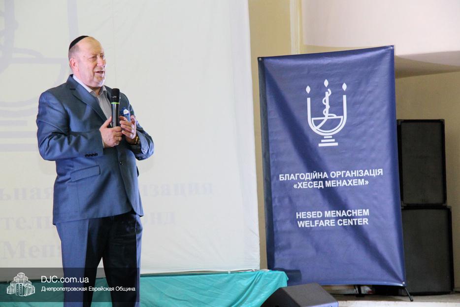 Перед началом концерта в главном зале областной филармонии, недавно вновь открытом для посещения публикой, собравшихся приветствовали: раввин Меир Цви Стамблер, член Попечительского Совета еврейской общины Днепра, председатель Совета Федерации еврейских общин Украины, президент Международного гуманитарно-педагогического института «Бейт Хана»; Анна Григолая, руководитель отдела развития ресурсов днепровского офиса «Джойнт» и Анатолий Плескачевский, директор «Хеседа Менахем».