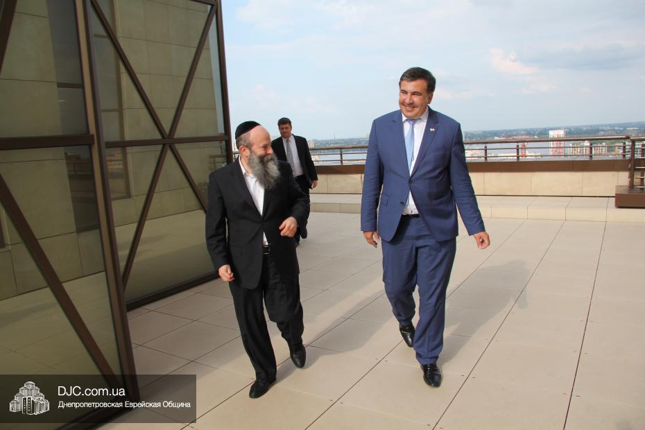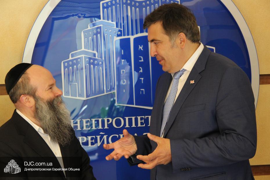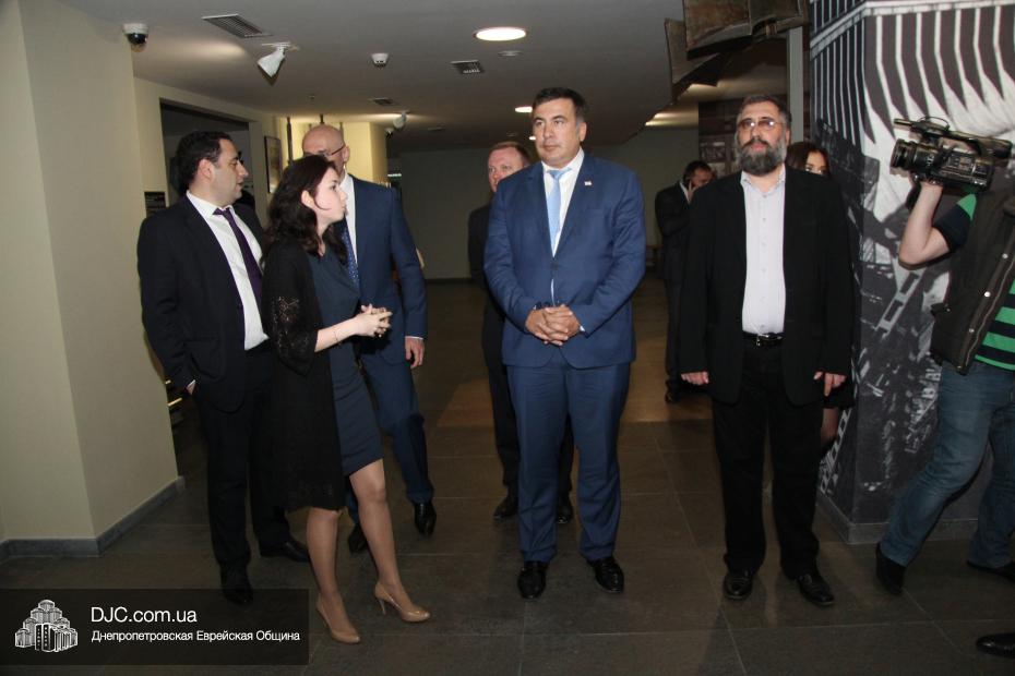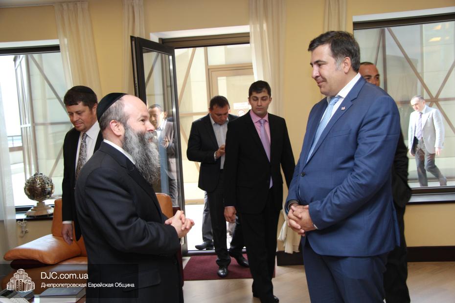 Михаил Саакашвили, Президент Грузии с 2004 по 2013 год, в рамках своего визита в Днепропетровск посетил еврейскую общину.