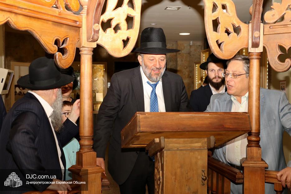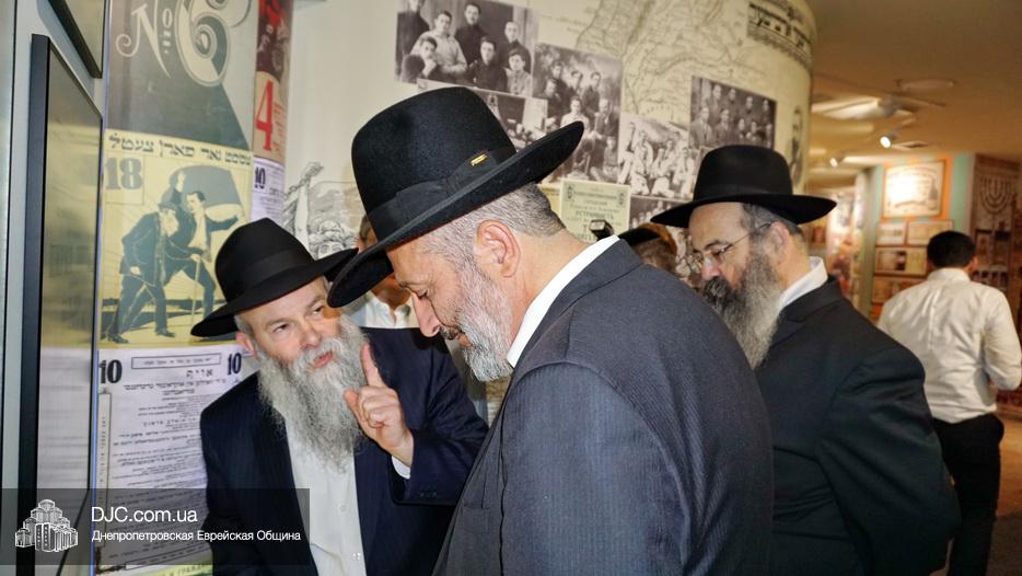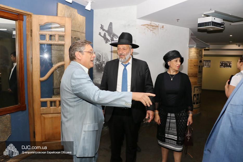 Экскурсию по музею для высокого гостя и сопровождающих его лиц провел директор Еврейского Музея Днепра и Украинского института изучения Холокоста «Ткума», доктор Игорь Щупак.