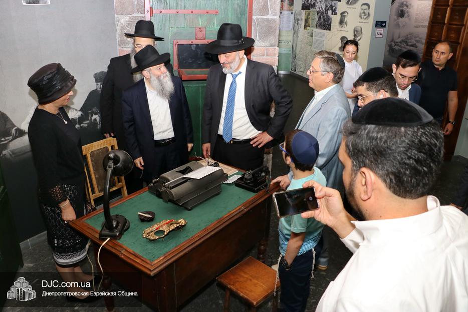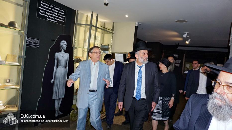 В рамках своего визита в еврейскую общину Днепра, Министр внутренних дел Израиля Арье Дери посетил музей «Память еврейского народа и Холокост в Украине», первый и единственный подобный музей в Украине.