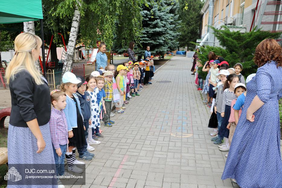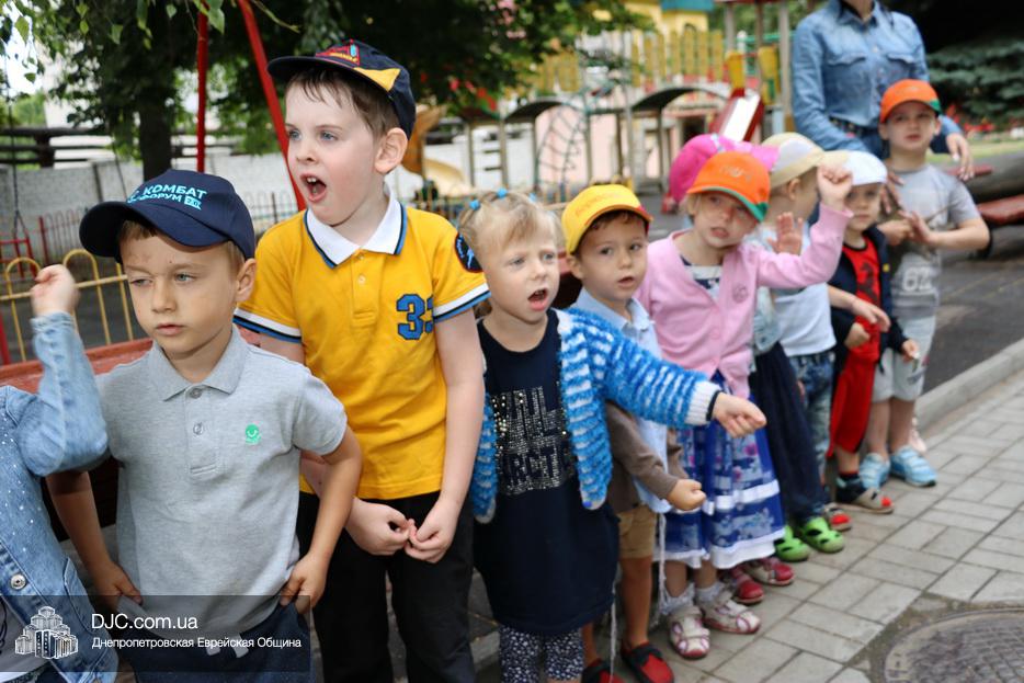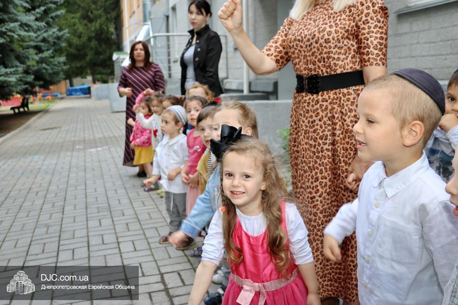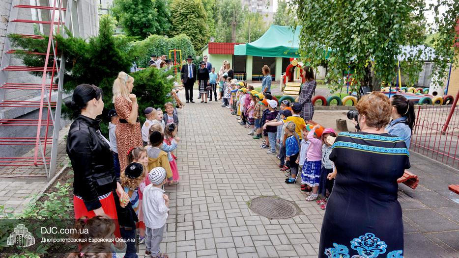 Здесь уважаемых гостей встречали дети, которые с большой радостью продемонстрировали свое знание 12 псуким и еврейских песен, что произвело на господина Арье Дери и его супругу Яффу, и сопровождающих их лиц большое впечатление. Затем министр осмотрел помещения садика, комнаты для занятий, спальни и ознакомился с использующимися в садике методиками еврейского воспитания сочетающего традиции и модерность.