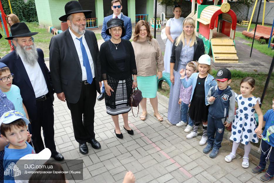 Осмотрев здание школы, которое сейчас ремонтируется, и посетовав, что дети на каникулах и нет возможности пообщаться с ними, получив полную информацию о плодотворном сотрудничестве еврейской школы с образовательными структурами Израиля, в том числе в рамках проекта «Хефциба», господин Арье Дери направился в детский садик «Бейт Циндлихт».