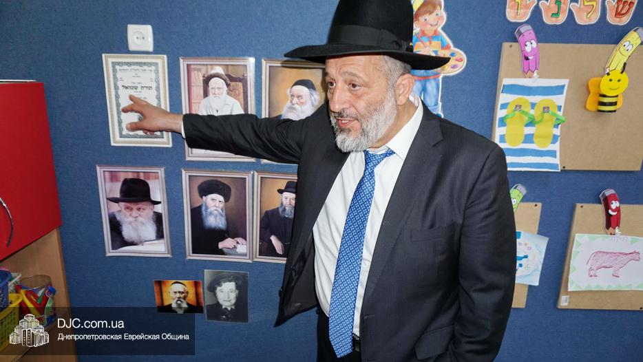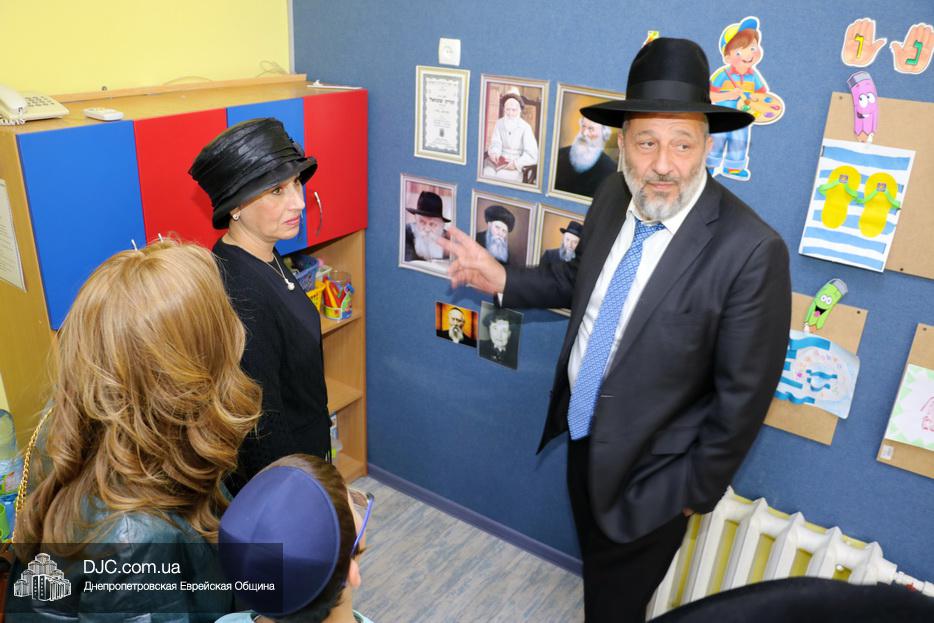 Главный раввин Днепра и региона Шмуэль Каминецкий показал высокому гостю еврейские кампусы и рассказал о том, как еврейская община Днепра выстроила дифференцированную сеть еврейских образовательных учреждений – от яселек до высшего учебного заведения и системы неформального образования для взрослых.