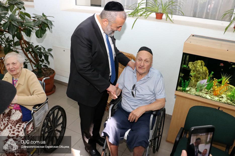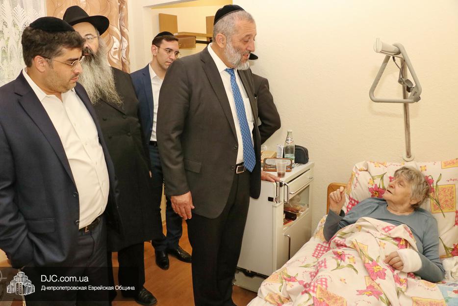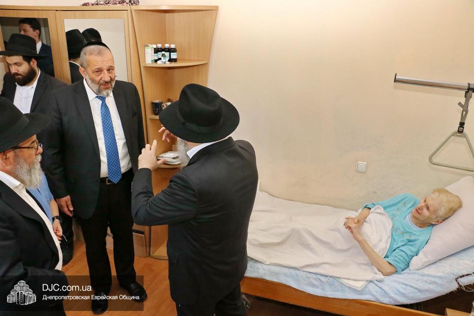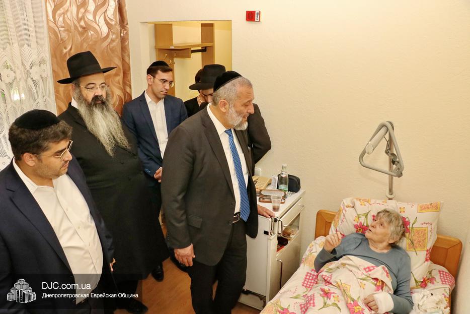 Раввин Каминецкий и господин Арье Дери посетили маломобильных пожилых людей, восстанавливающийся после тяжелых травм в «Бейт Барух», в том числе замечательного педагога и активистку общины Аллу Григорьевну Гельберг и ряд других жильцов.