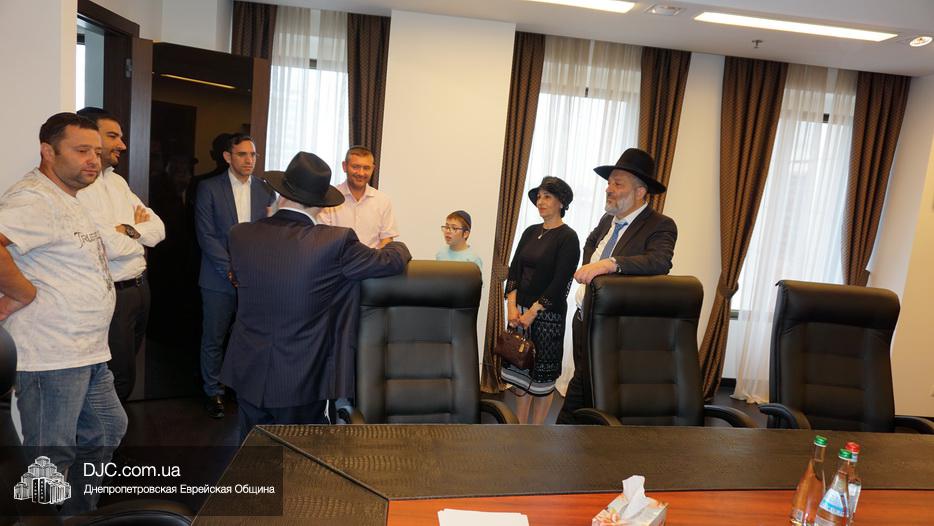 Главный раввин Днепра и региона Шмуэль Каминецкий тепло приветствовал высокого гостя и сопровождающих его лиц, и познакомил с историей, современным положением еврейской общины Днепра и ее планами на будущее.