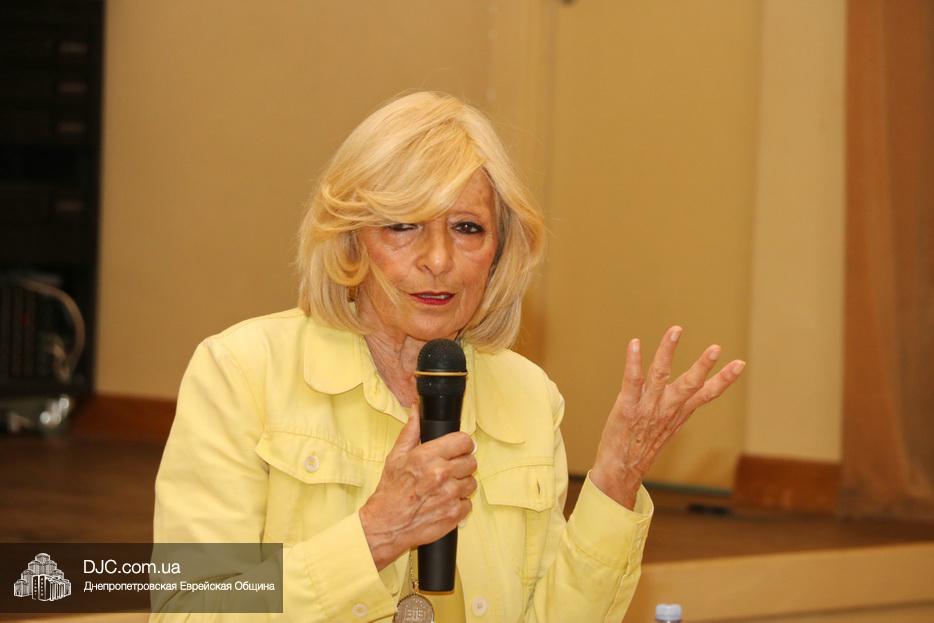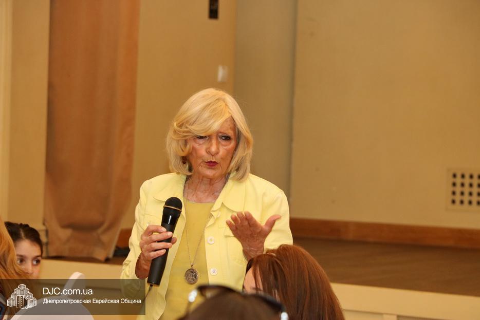 Также миссис Джейкобсон ответила на многочисленные вопросы еврейских женщин Днепра. Так как встреча проходила в период «Бейн амецорим», в который принято уделять особое внимание вопросам, связанным с Иерусалимским Храмом женщинам был показан небольшой видеофильм о Храме. А затем под руководством Ципоры Нахшон они исполнили несколько вдохновляющих хасидских нигунов.