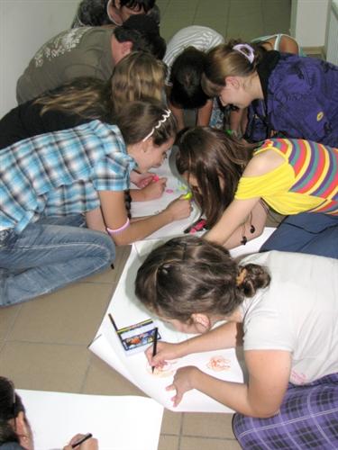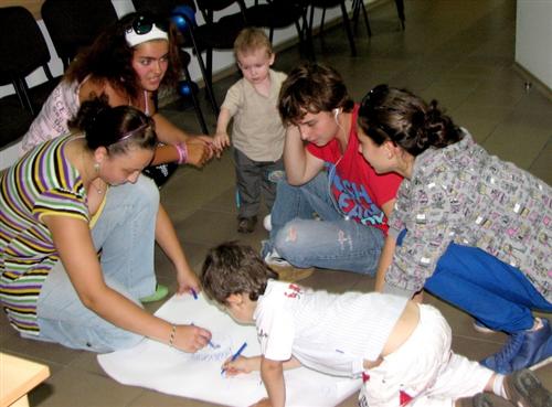 После этого детям предложили пойти порисовать коллективный портрет наалешки, а родители обсудили вопросы здоровья, ностальгии, психологической адаптации, а также другие важные детали.