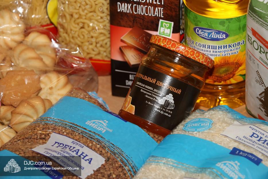 В каждом продуктовом наборе, который получат все пожилые люди и люди с ограниченными возможностями, находится мед – символ сладкого года, а также другие продукты, которые помогут малообеспеченным людям достойно отметить встречу Нового года. Общий вес набора – 12 килограмм. Кроме упомянутого меда, в продуктовый набор также вошли: гречка, мука, рис, макаронные изделия, сахар, подсолнечное масло, рыбные консервы «Сардины», консервированные зеленый горошек и кукуруза, а также кошерные печенье и шоколад.