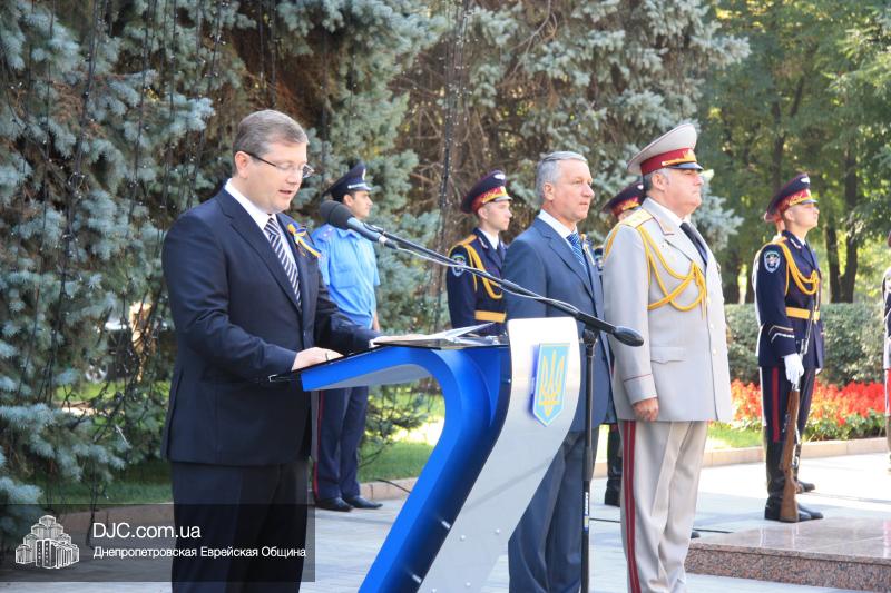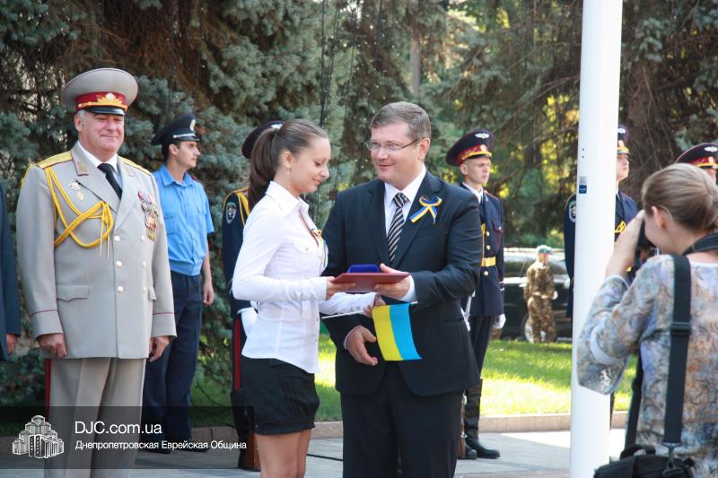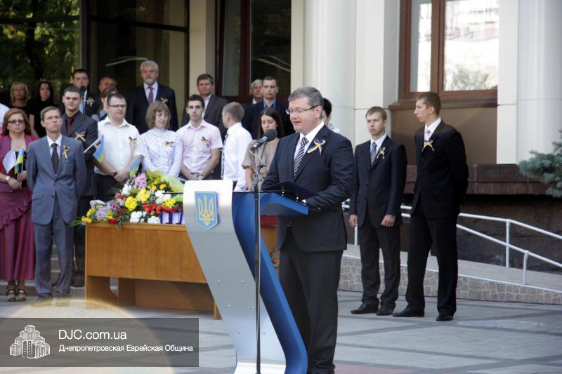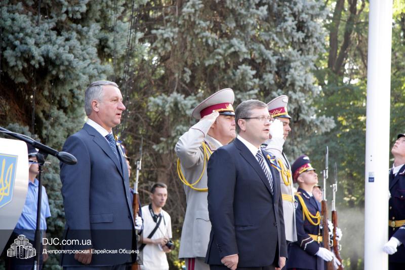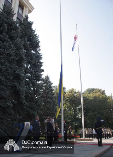В Днепропетровске, на площади перед зданием областной государственной администрации, прошла торжественная церемония поднятия Государственного Флага Украины. В торжественной церемонии приняли участие губернатор Днепропетровской области Александр Вилкул, городской голова Иван Куличенко, командир шестого танкового корпуса генерал-лейтенант Сергей Бесараб, депутаты городского и областного совета, главы организаций национальных меньшинств, делегации представителей основных конфессий, государственных и общественных организаций, воинских частей и широкой общественности города.