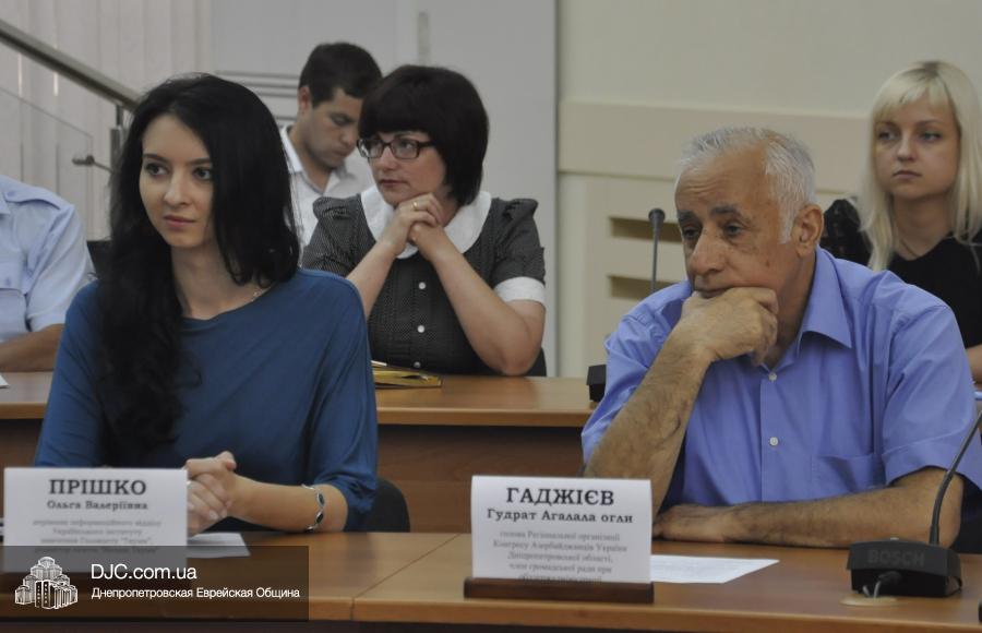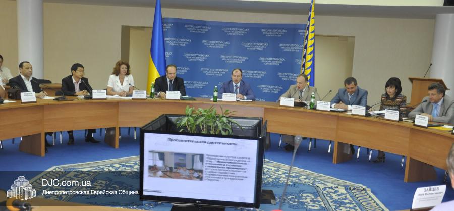 На заседании коллегии Председатель общественного совета при облгосадминистрации Алексей Лазько рассказал, что в 2009 году было создано Объединение национально-культурных обществ «Еднисть», в которое входят все активные национально-культурные общества региона и их организации. По мнению Алексея Лазько и глав национальных обществ агрессия в обществе, которая проявляется в виде ксенофобии, антисемитских настроений, межнациональной розни, происходит от дефицита информации. И именно для предотвращения различных проявлений ксенофобии внедряются программы культурно-просветительского направления: «Уроки толерантности», на которых ветераны разных национальностей рассказывают учащимся школ и вузов о событиях Великой Отечественной войны, Фестиваль« Единство в разнообразии», который, начиная с 2010 года, совместно с Днепропетровским Художественным музеем, проводится ежегодно; проект «События и Персоналии» – установление памятных знаков известным деятелям, которые создавали историю нашего региона.