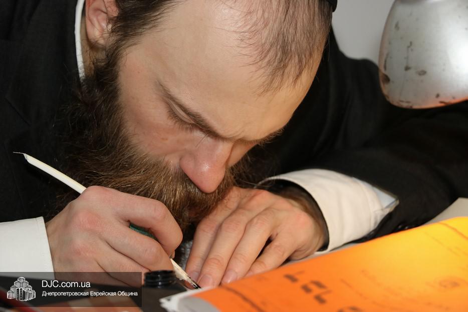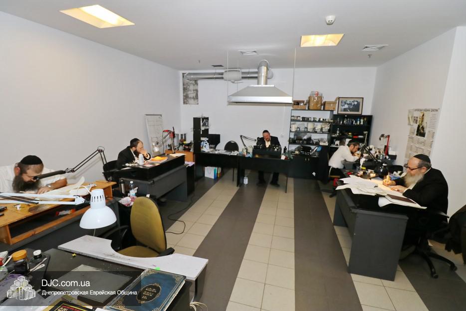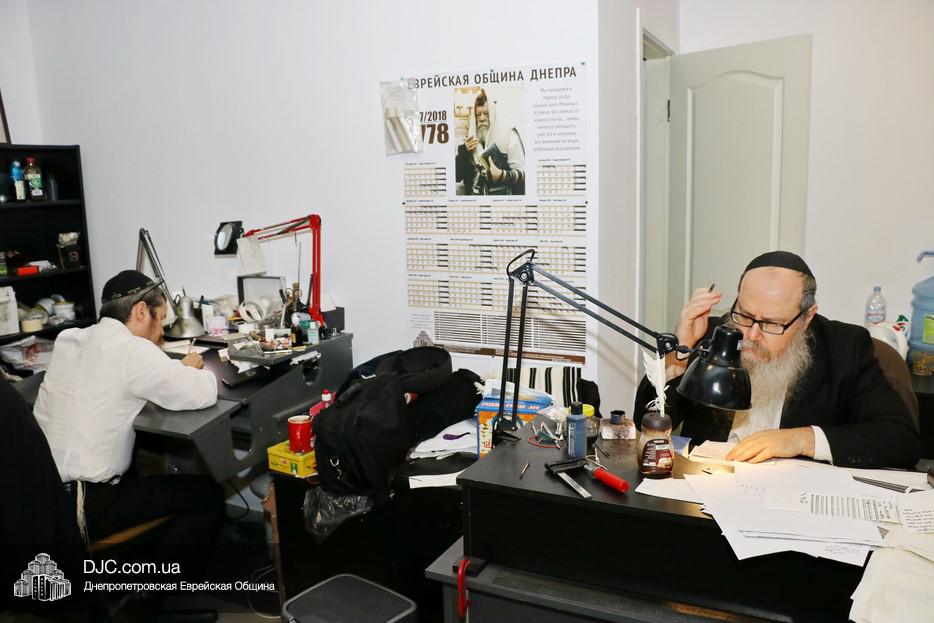 «Во-первых, мы учим сойферов и обеспечиваем их работой, а еврейские общины, и не только в Украине, предметами нашего искусства, – рассказывает Главный сойфер НЦС раввин Реувен Марголин, – это наш принцип обучать и принимать на работу местных евреев, возрождая наши сойферские традиции, и мы, по меньшей мере в Украине – структура уникальная. Но теперь, с получением большого помещения, по инициативе еврейской общины Днепра и ее Главного раввина Шмуэля Каминецкого, мы принимаем на себя функции просветительского центра и оборудуем экспозицию, которая будет знакомить евреев и гостей общины с тем, что такое софрут, и как он осуществляется, с подробным рассказом о каждом этапе изготовления тфиллин, мезуз и Свитков».