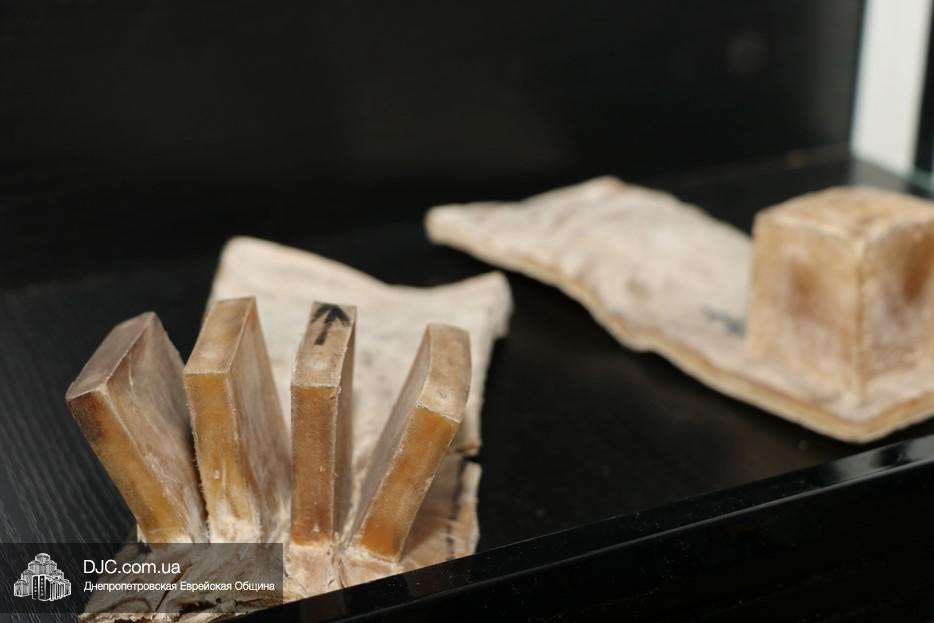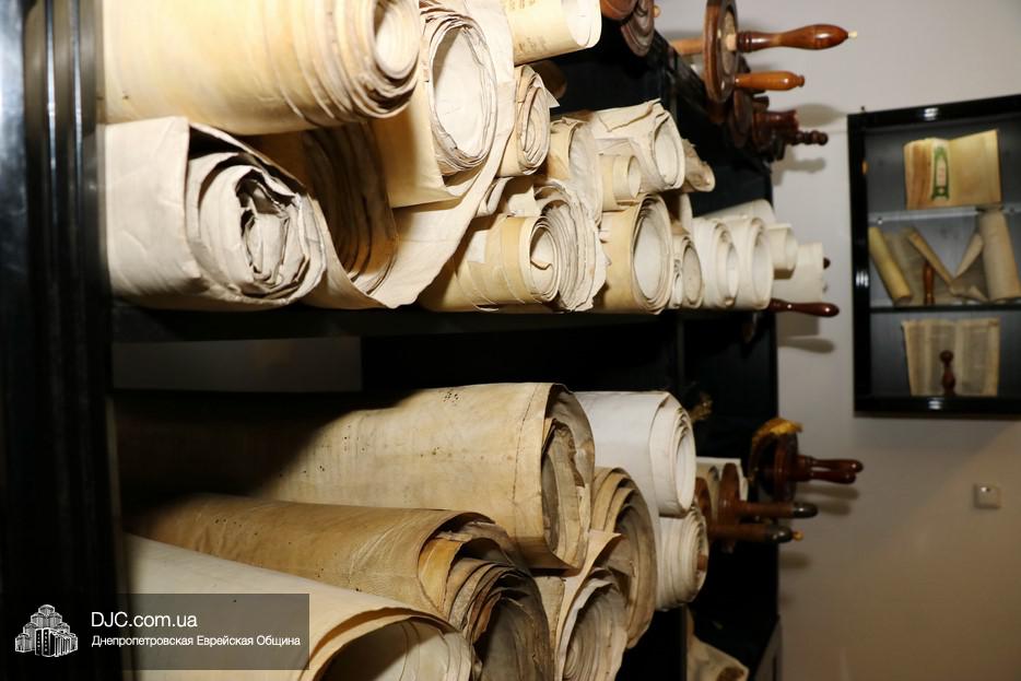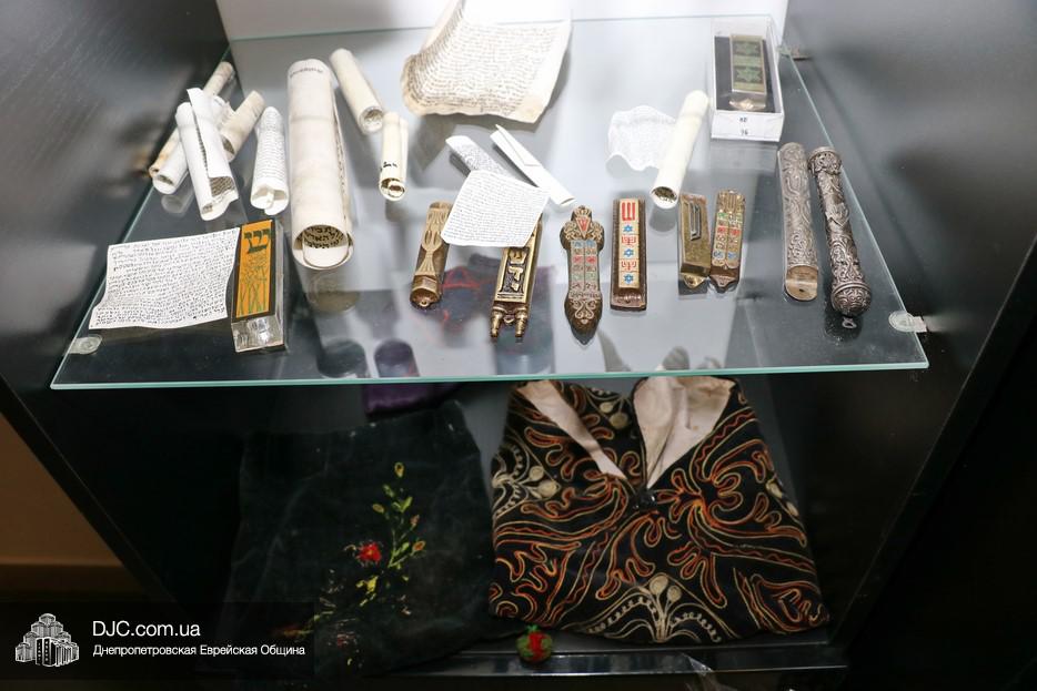В экспозиции много уникальных экспонатов – исторические и необычные Свитки, например, совсем небольшой в несколько сантиметров с микроскопическими буковками, которые без лупы и разобрать то нелегко, маленькие тфиллин, которые специально изготовлялись, чтобы передавать их евреям, схваченным НКВД, КГБ, и чтобы их легко было прятать от обысков и «шмонов». Среди экспонатов есть и вполне и современные артефакты, например, «фальшивые» мезузы, подделки под софрут – листки бумаги с напечатанным машинным образом текстом, а есть и пергамент, где текст написан, но шариковой ручкой, что, разумеется, полностью лишает объект софрута его религиозного содержания.