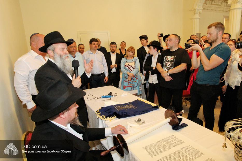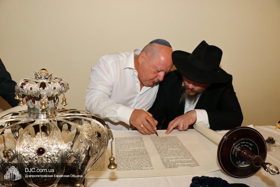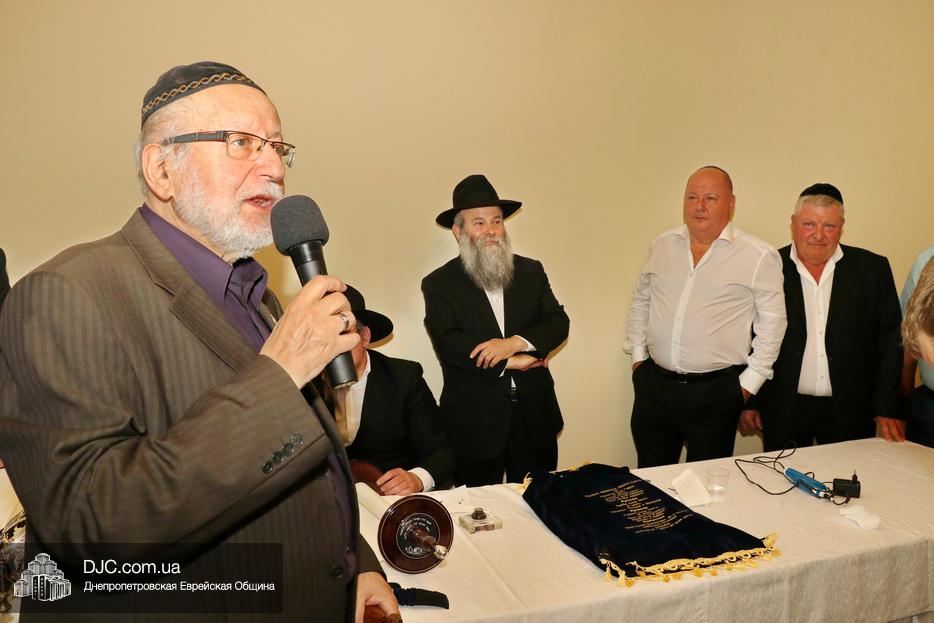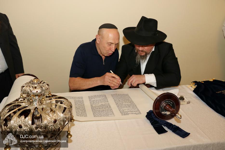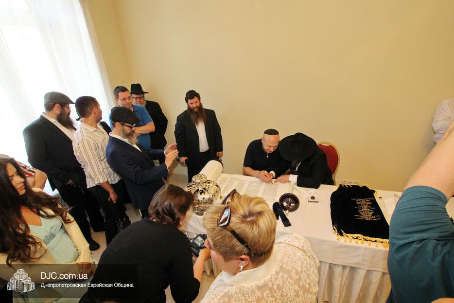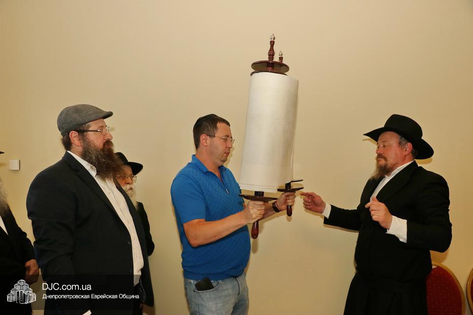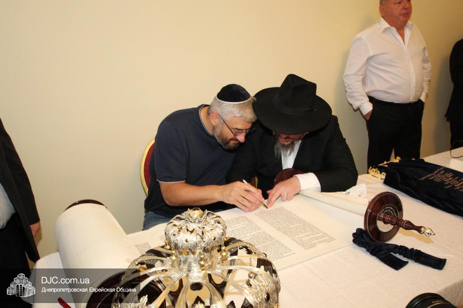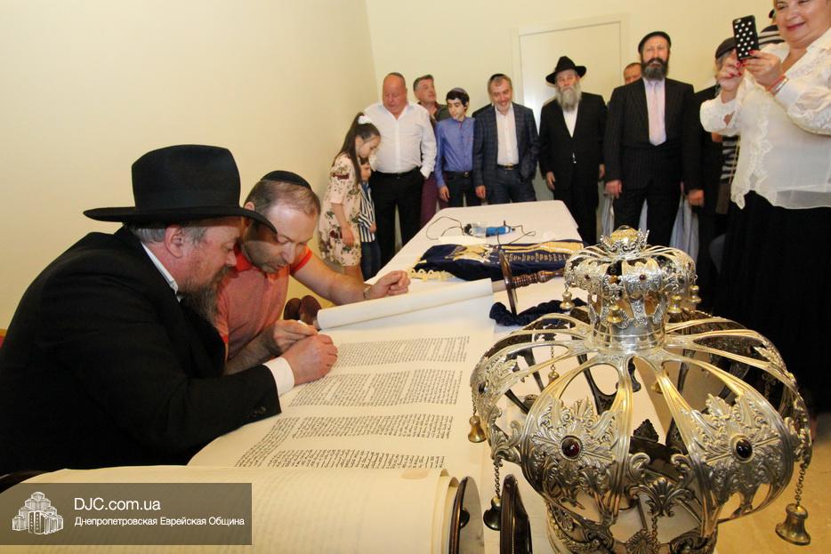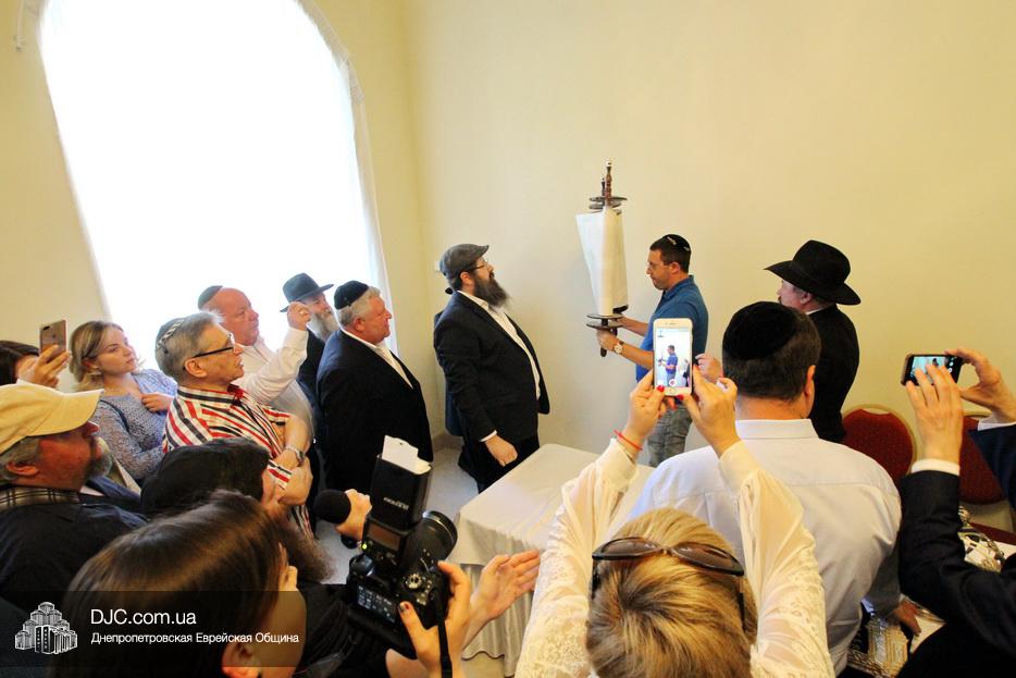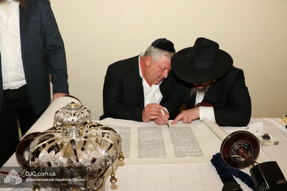 Церемония Завершения Свитка проходила в «Доме Пчелкина». Главный раввин Днепра и региона Шмуэль Каминецкий, выступая на церемонии отметил, что подарить даже один свиток Торы общине это колоссальная заслуга перед Вс-вышним, а благодаря семье Капустиных и ее партнерам, Свитки Торы есть во многих еврейских общинах Украины, и этот Свиток, уже шестой по счету, также принесет всем, кто помогал в его создании и в честь кого он был написан, огромную заслугу перед Творцом, тем более, что он дарится общине накануне праздника Дарования Торы на горе Синай.