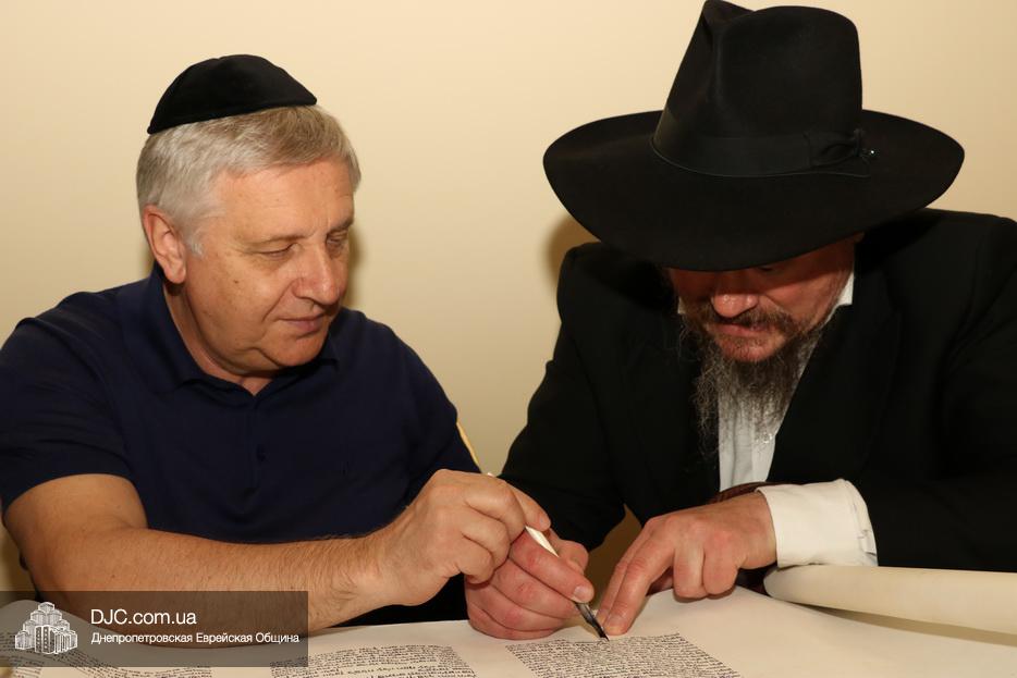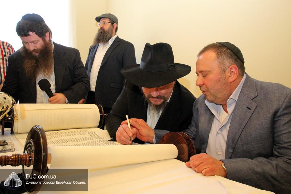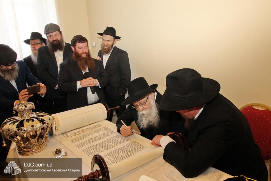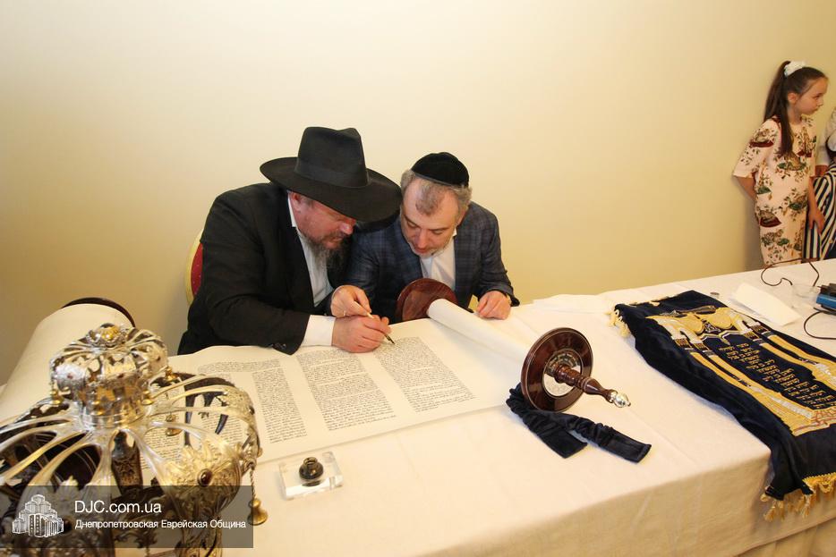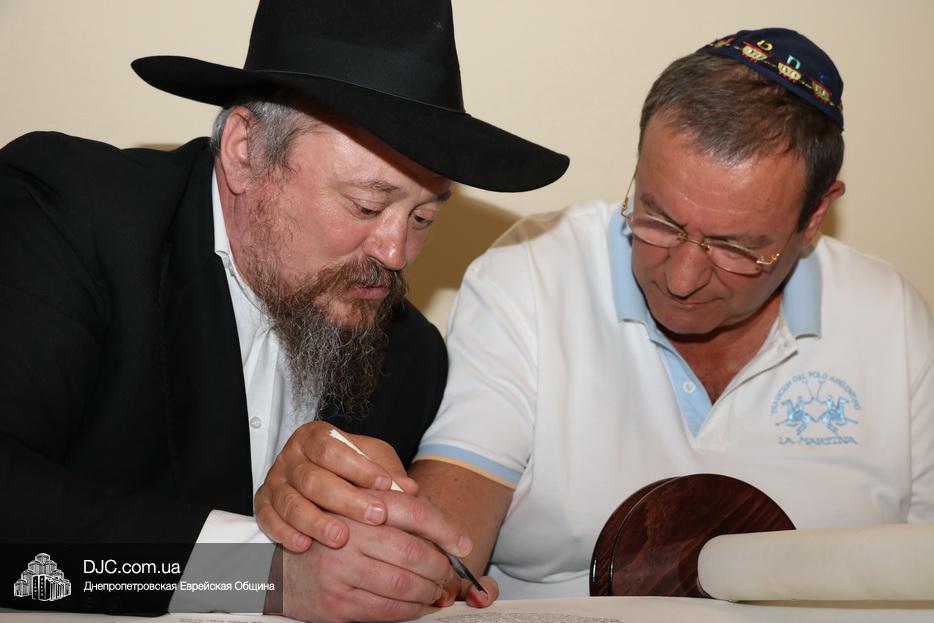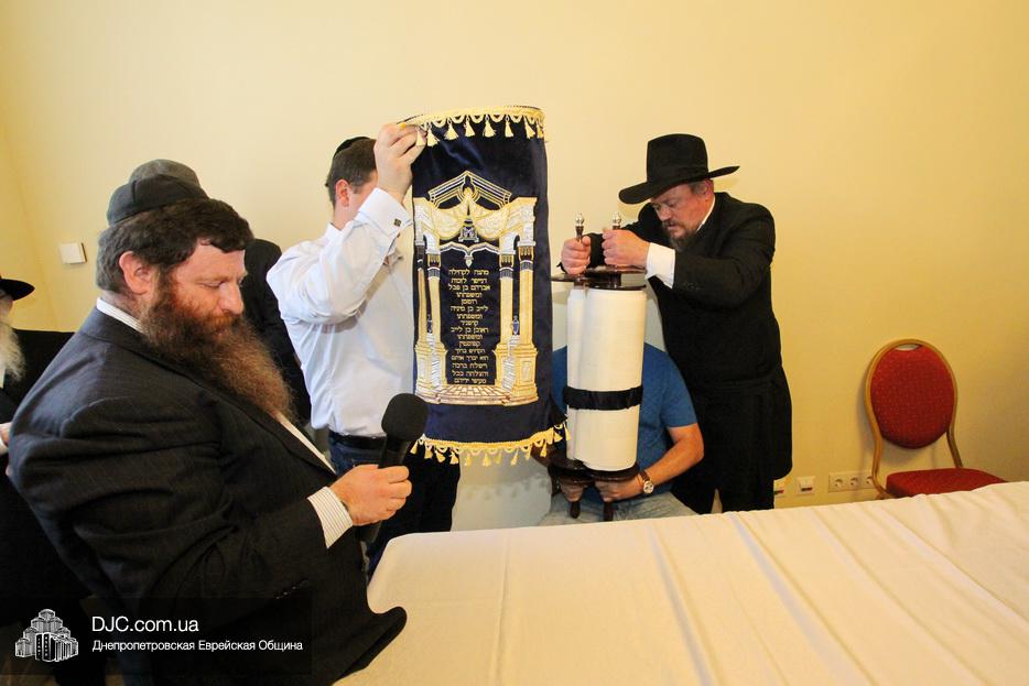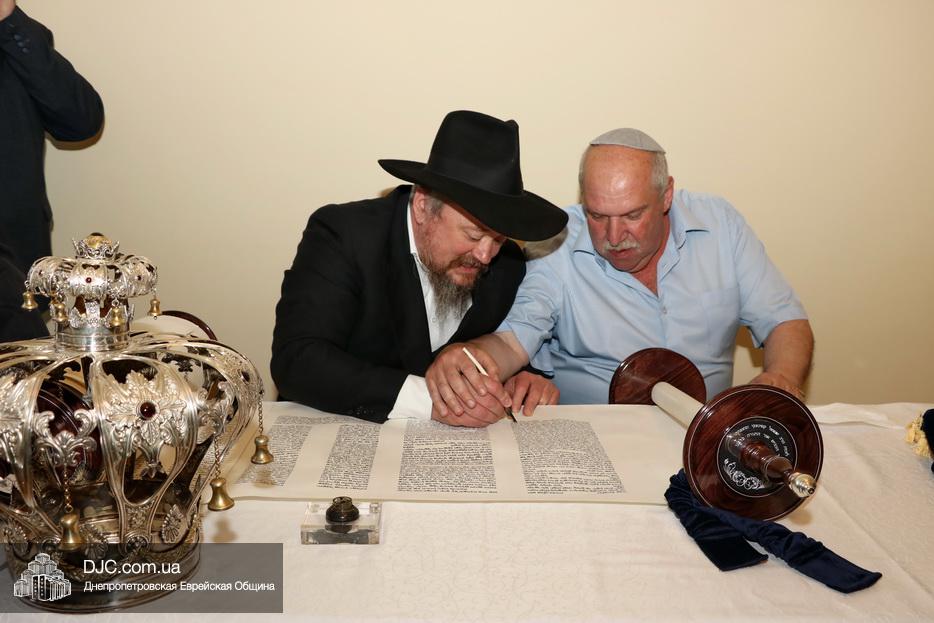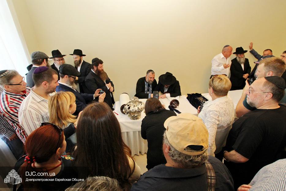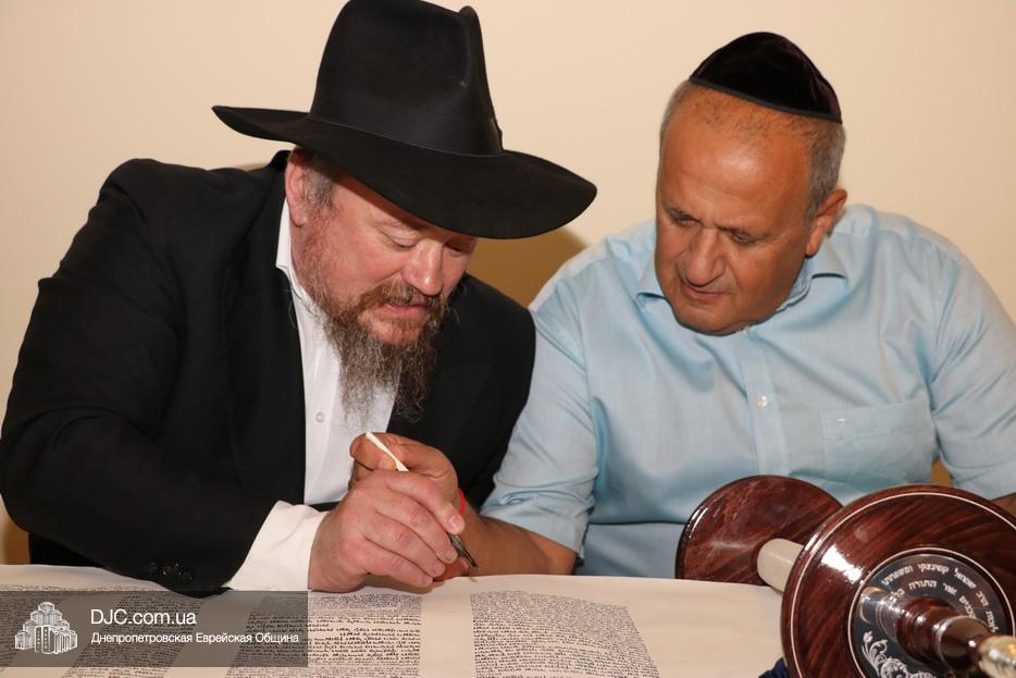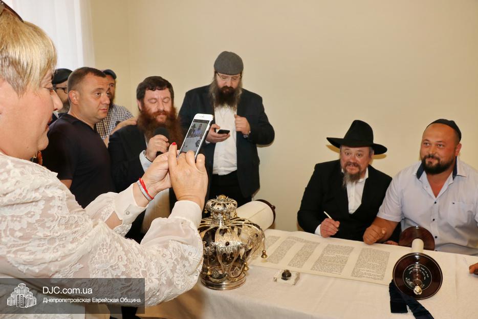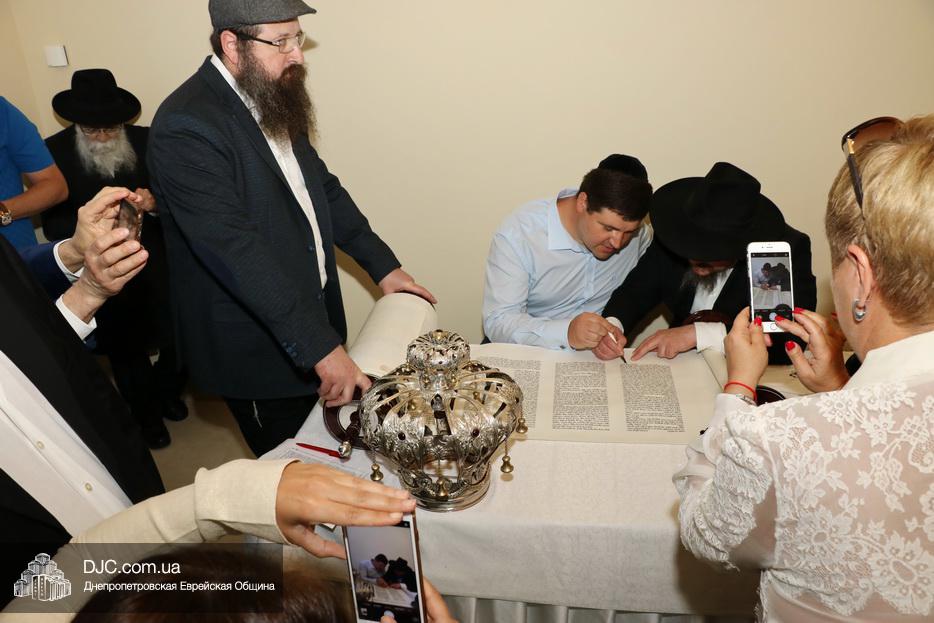 Церемония Завершения Свитка проходила в «Доме Пчелкина». Главный раввин Днепра и региона Шмуэль Каминецкий, выступая на церемонии отметил, что подарить даже один свиток Торы общине это колоссальная заслуга перед Вс-вышним, а благодаря семье Капустиных и ее партнерам, Свитки Торы есть во многих еврейских общинах Украины, и этот Свиток, уже шестой по счету, также принесет всем, кто помогал в его создании и в честь кого он был написан, огромную заслугу перед Творцом, тем более, что он дарится общине накануне праздника Дарования Торы на горе Синай.