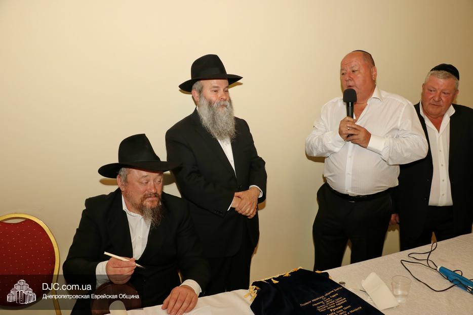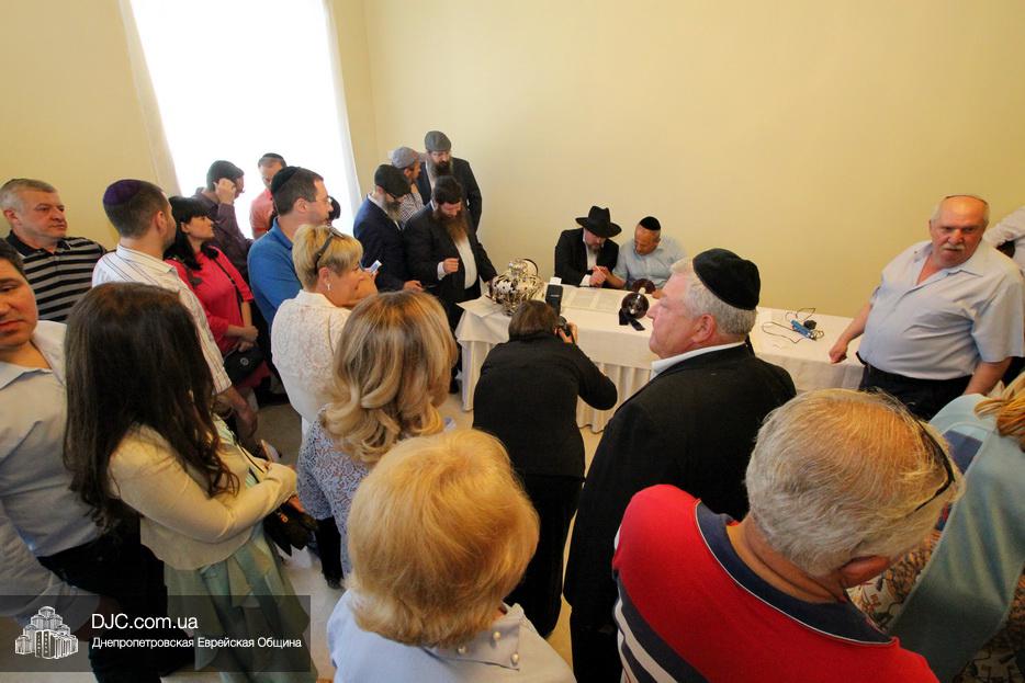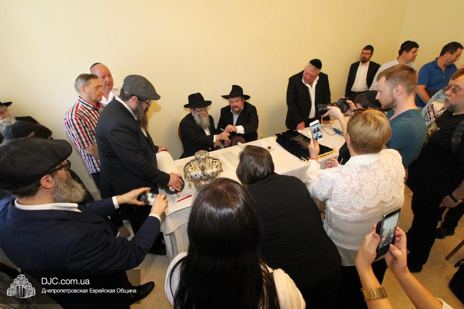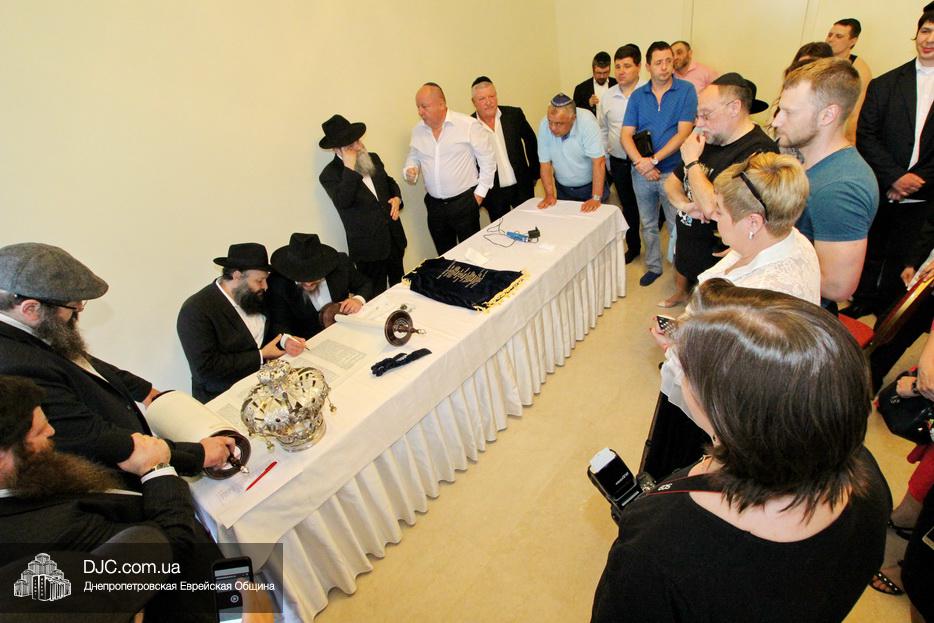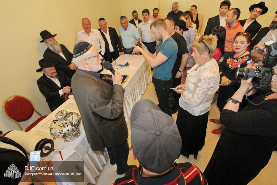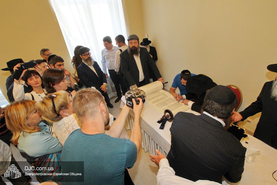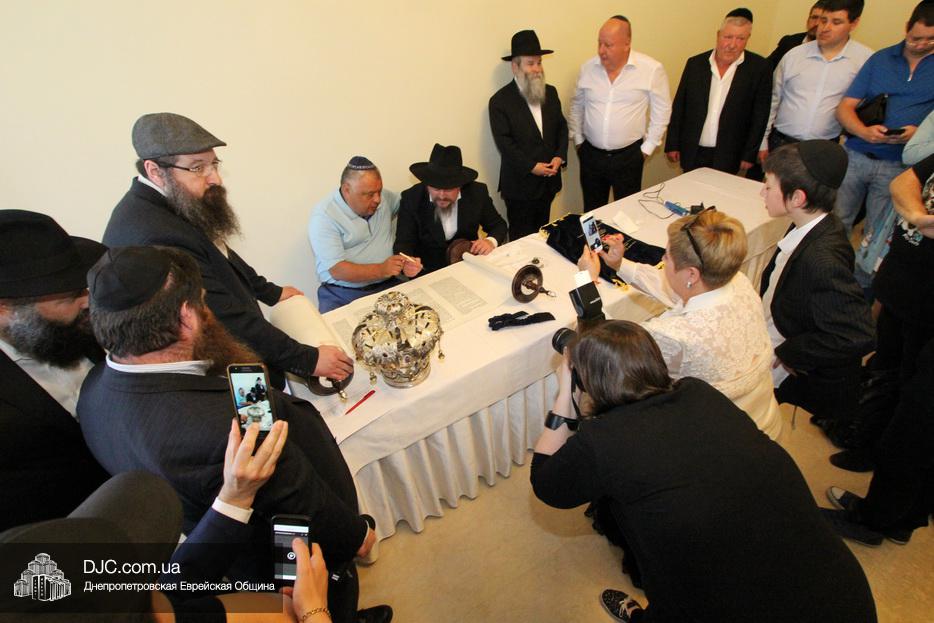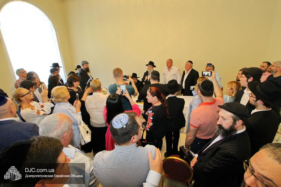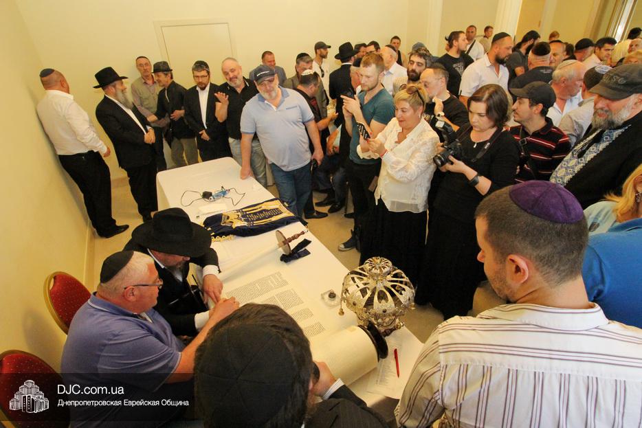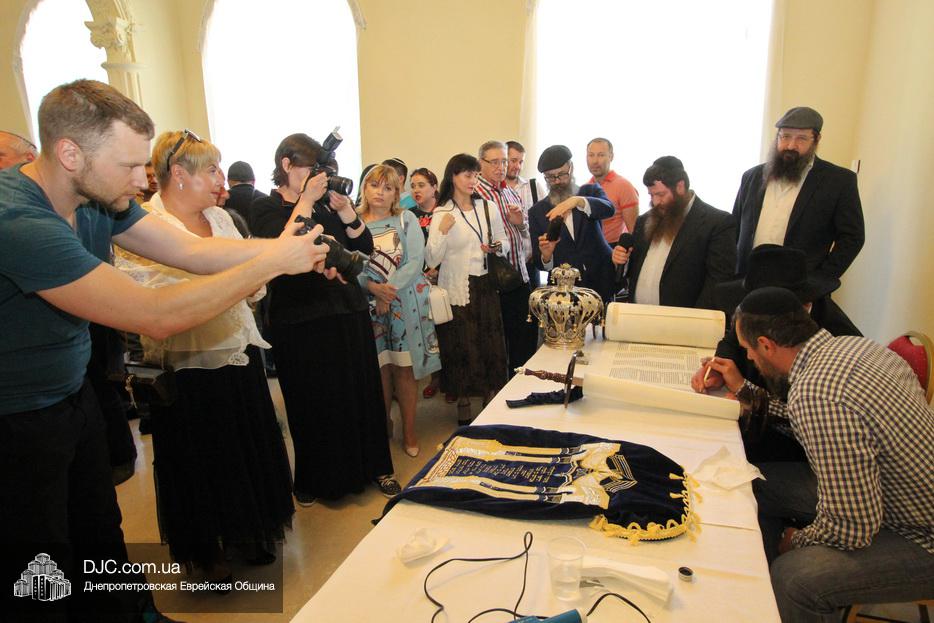 Церемония Завершения Свитка проходила в «Доме Пчелкина». Главный раввин Днепра и региона Шмуэль Каминецкий, выступая на церемонии отметил, что подарить даже один свиток Торы общине это колоссальная заслуга перед Вс-вышним, а благодаря семье Капустиных и ее партнерам, Свитки Торы есть во многих еврейских общинах Украины, и этот Свиток, уже шестой по счету, также принесет всем, кто помогал в его создании и в честь кого он был написан, огромную заслугу перед Творцом, тем более, что он дарится общине накануне праздника Дарования Торы на горе Синай.
