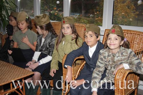 Дети пришли, одетые в стильненькие гимнастерки и пилотки, специально подготовившись с учителем, чтобы песнями и стихами порадовать своих названных дедушек и бабушек, напомнив им дни их молодости.