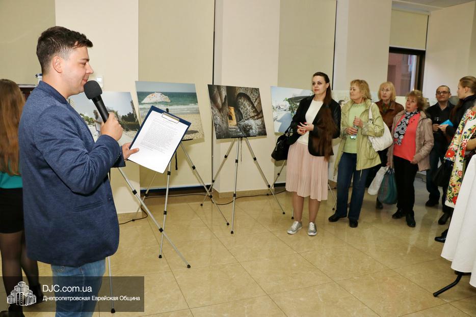 Торжественное открытие началось с приветствия Второго секретаря Посольства государства Израиль в Украине, директора Израильского Центра в Днепре Вячеслава Смоткина, затем ведущий мероприятия Максим Касьянов предоставил слово автору выставки, фотохудожнику Борису Бухману.