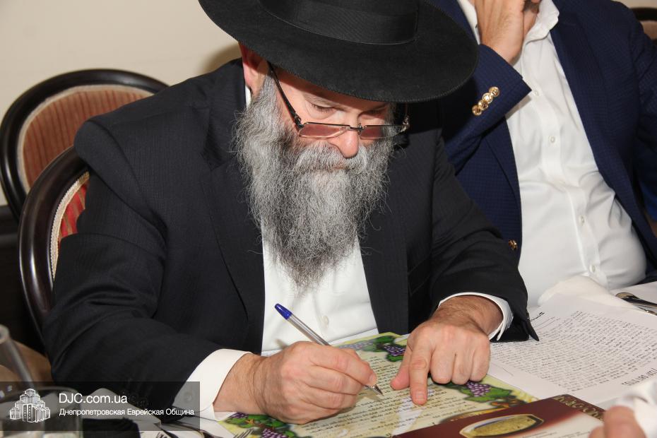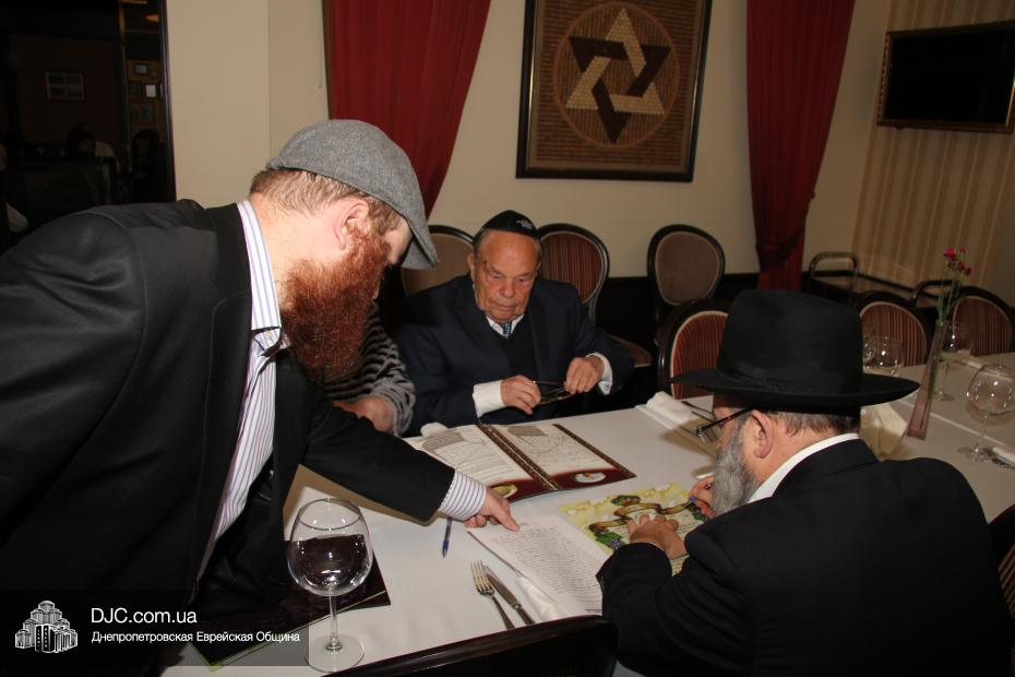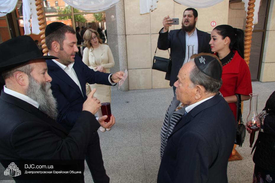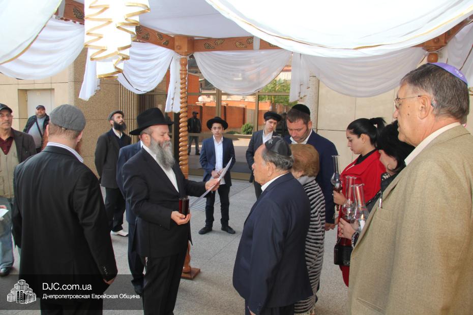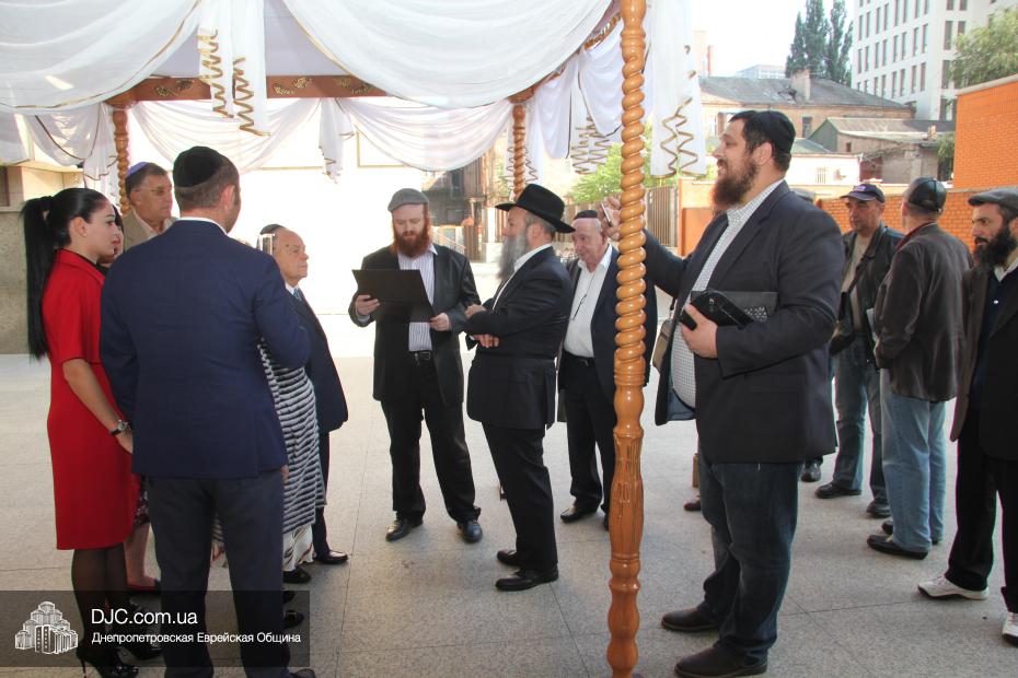 В начале состоялась традиционная церемония подписания Ктубы. Затем невесту семь раз обвели вокруг жениха, стоящего под Хупой, письмо благословение Любавического Ребе прочел секретарь раввинского суда Авраам Иосиф Ицхак Каршенбаум, а всю церемонию «Хупа веКидушин» провел Главный раввин Днепра и региона Шмуэль Каминецкий.