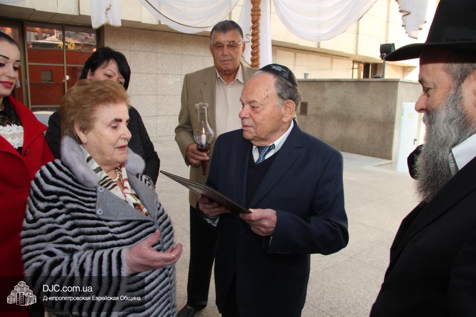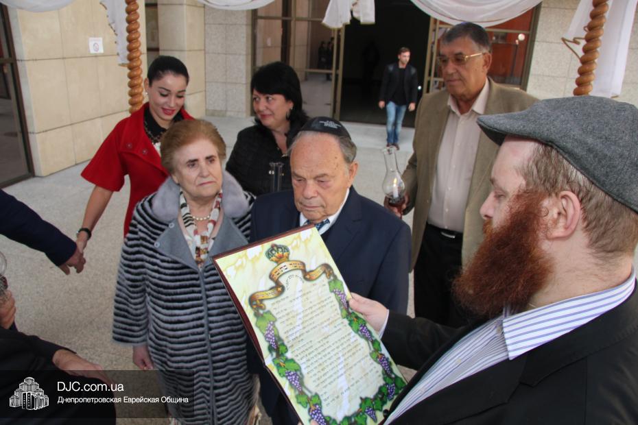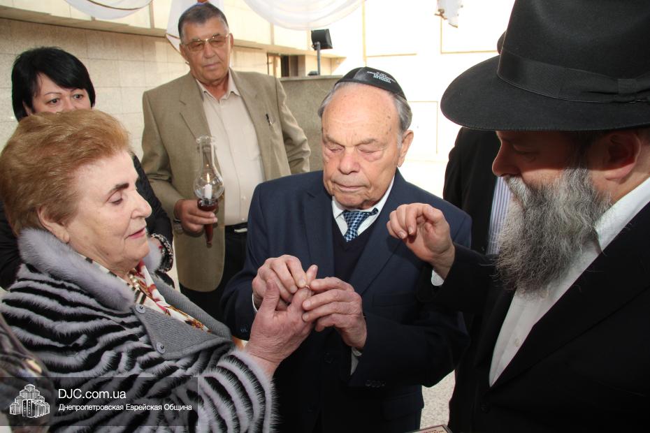 В Днепре, накануне последней Субботы уходящего 5776 года, состоялась очень необычная свадьба – под Хупу встала пара Шимон (Семен) и Голда (Ольга) Конторовы, приехавшие в Днепр на бат-мицву своей правнучки.