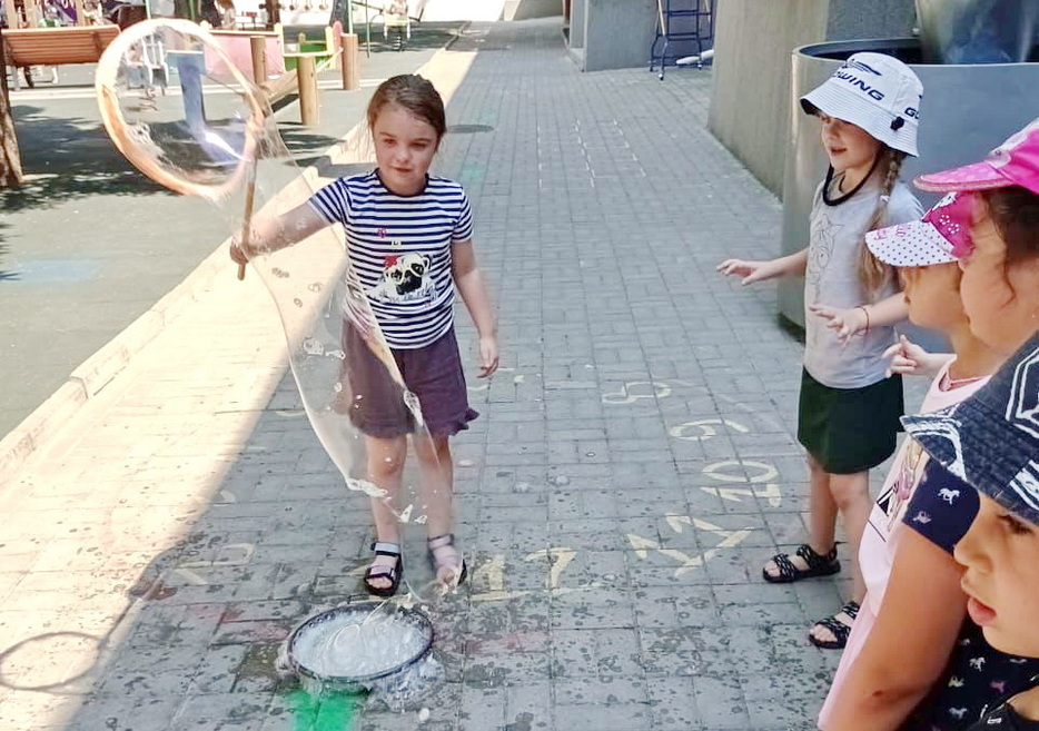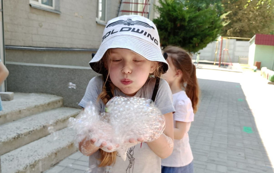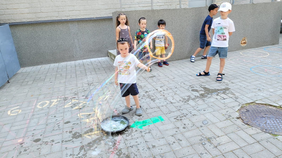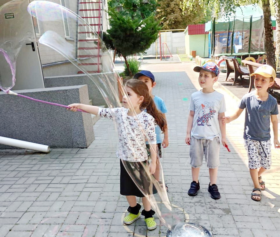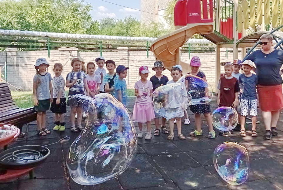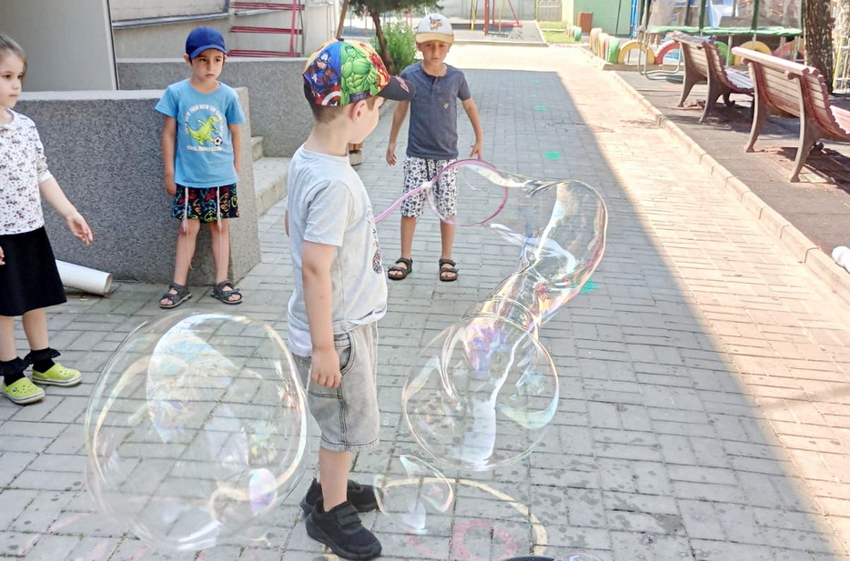 В один из дней на эту тематику у детей было «Шоу мыльных пузырей». Пузыри были с разными запахами, и малыши получили много удовольствия и восторга. Они были как настоящие исследователи и определяли, чем пахнут разные смеси для пузырей.