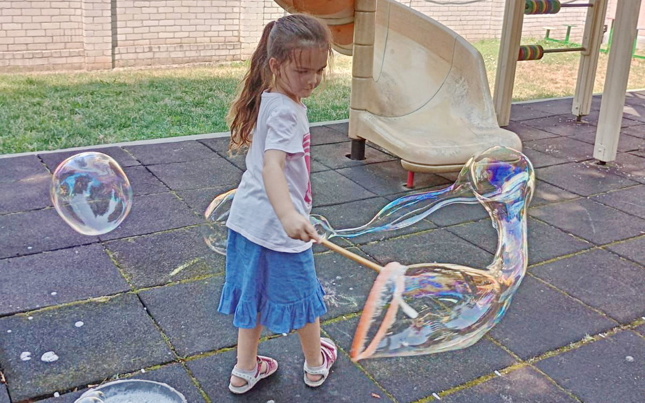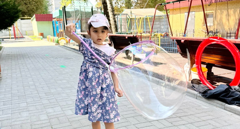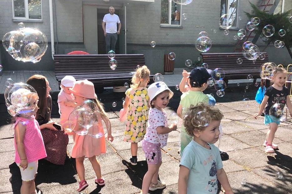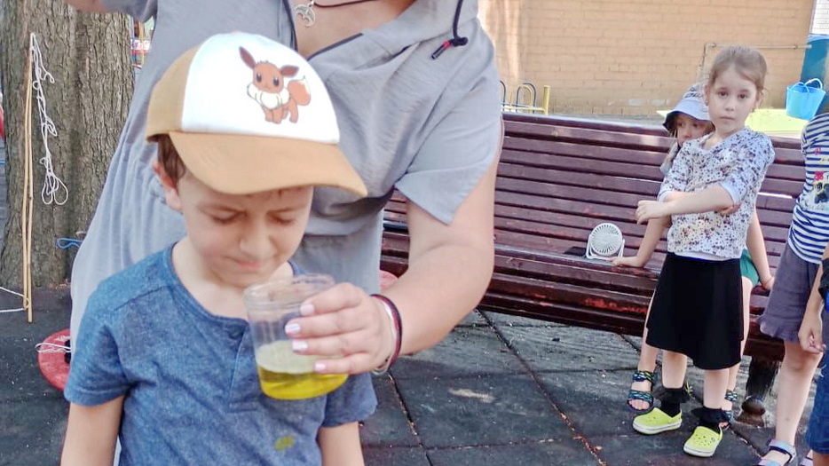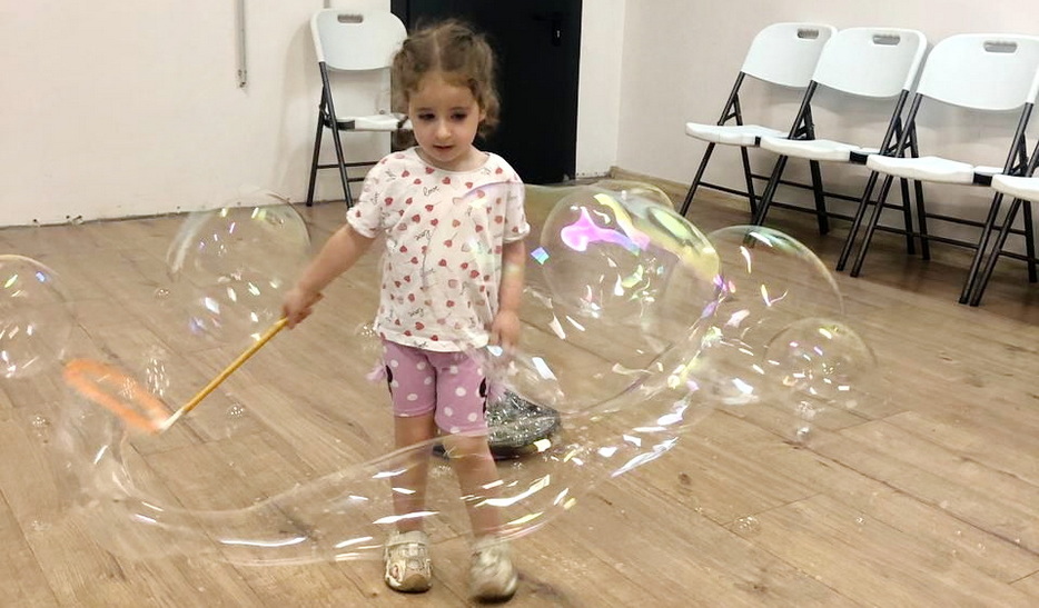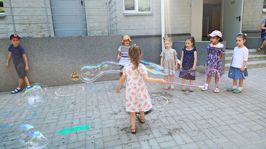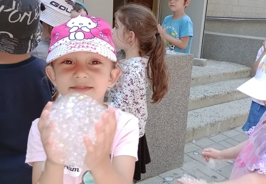 В один из дней на эту тематику у детей было «Шоу мыльных пузырей». Пузыри были с разными запахами, и малыши получили много удовольствия и восторга. Они были как настоящие исследователи и определяли, чем пахнут разные смеси для пузырей.