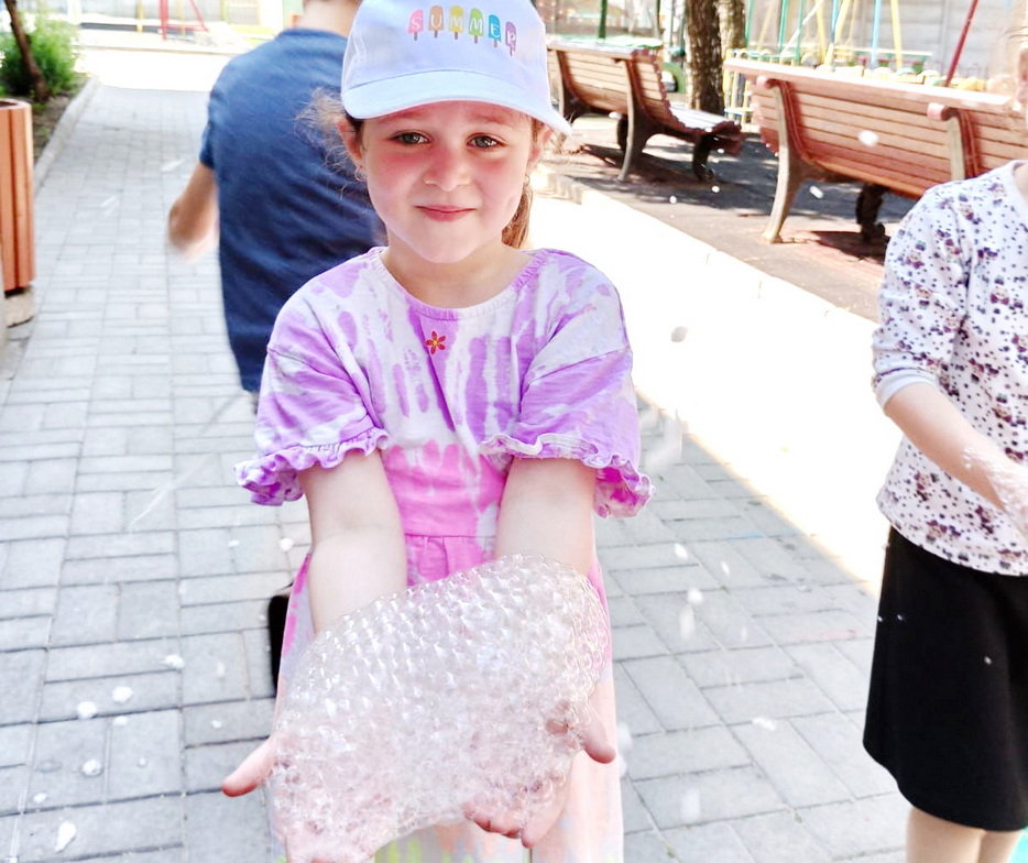 Кроме того, каждый смог сам попробовать пускать большие пузыри, и это добавило им веселья.