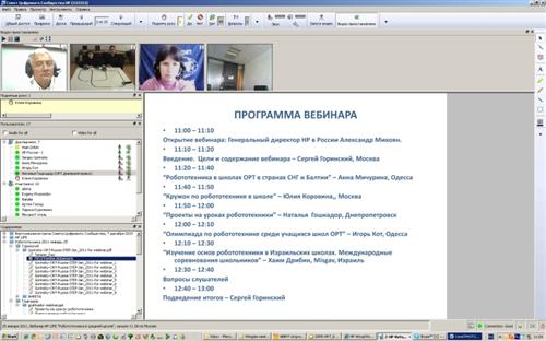 Еврейская школа Днепропетровска «Ор Авнер Хабад-Любавич» им. Леви-Ицхака Шнеерсона № 144 приняла участие в первом вебинаре, организованном ОРТом по робототехнике. Вебинар — это форма дистанционного семинара, где участники находятся возле компьютеров на своих рабочих местах, однако с помощью интернет технологий могут прослушивать лекции, задавать вопросы и общаться друг с другом, как если бы они находились на обычном семинаре. Организаторы определяют вебинар, как видеоконференцию, позволяющую одновременно подключиться 100 слушателям.