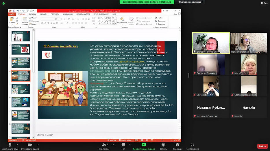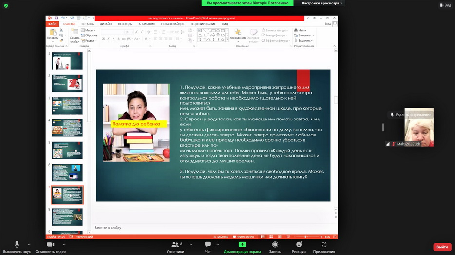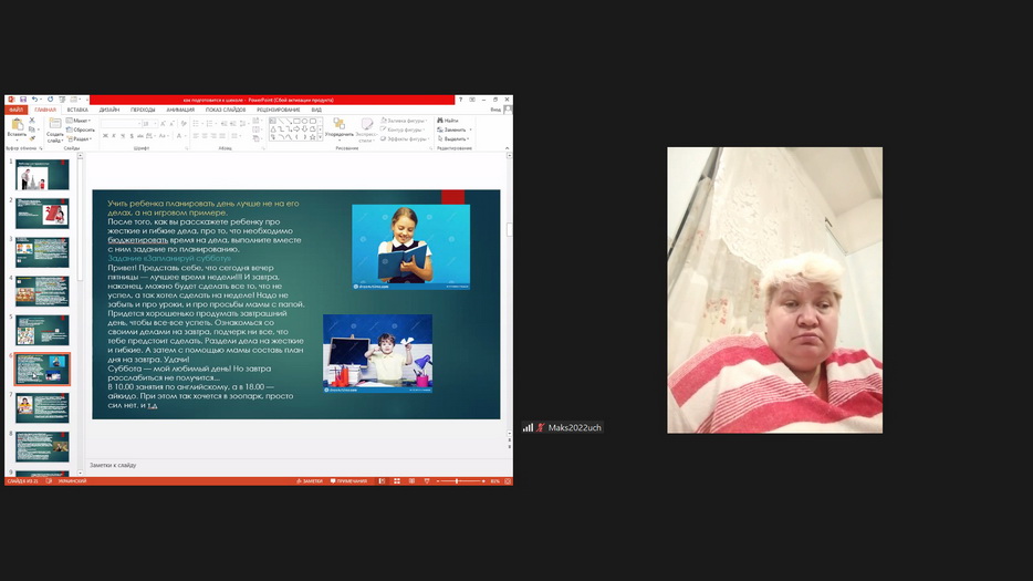 «Нова зустріч психолога Вікторії Потебенько була присвячена плануванню часу молодшого школяра, – рассказала нашему сайту методист Центра Елена Овчаренко, – методика, з якою познайомилися батьки на вебінарі, ґрунтується на психологічній концепції позитивного мислення.