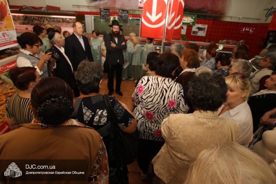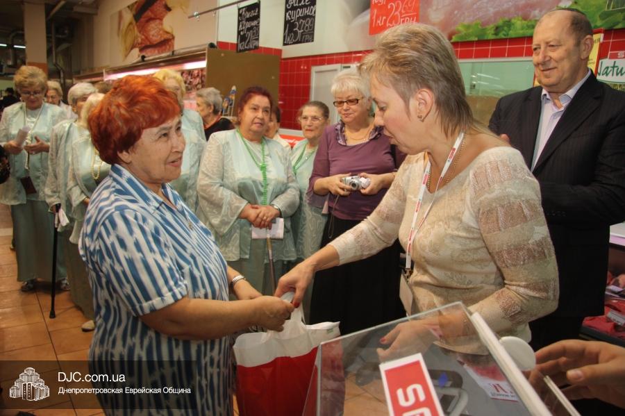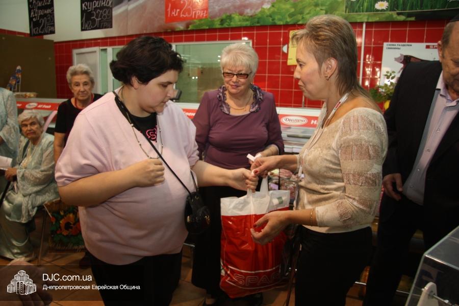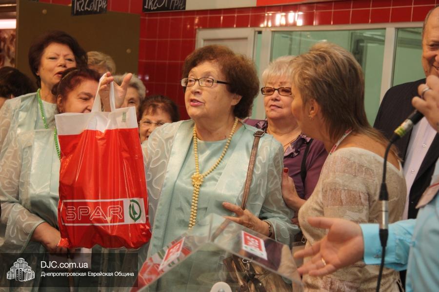 Кроме того, партнеры и друзья Хеседа – сеть магазинов «SPAR», предоставила дополнительный подарок для пожилых евреев Днепропетровска – особую скидку 6% на все время праздников месяца Тишрей. В одном из магазинов сети «SPAR» в комплексе «Мириада», в начале проспекта Кирова, было организовано торжественное мероприятие по случаю Нового года.