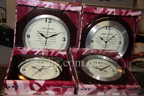 — Настенные часы, с нанесенными на циферблат текстами благословений. Есть два варианта: с благословением для дома и благословением для офиса. Такие часы станут хорошим представительским подарком при завязывании или поддержании деловых отношений, а также для того, чтобы украсить интерьер дома ваших друзей красивым и полезным элементом с ярко выраженной еврейской тематикой.