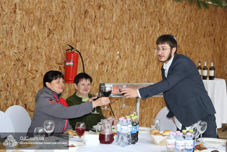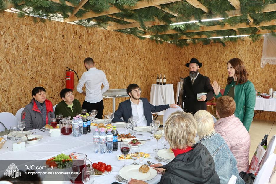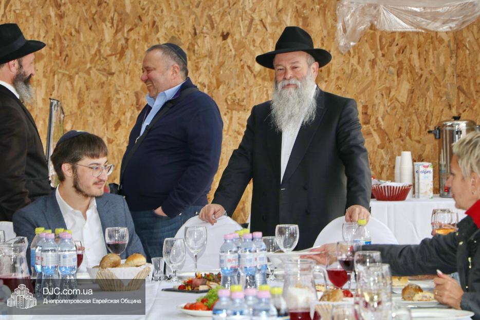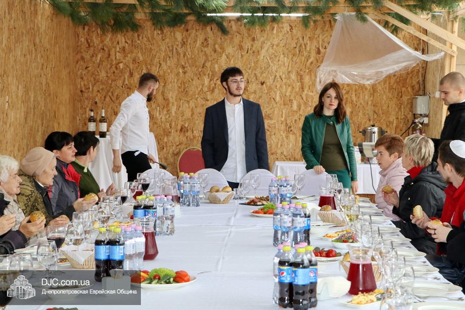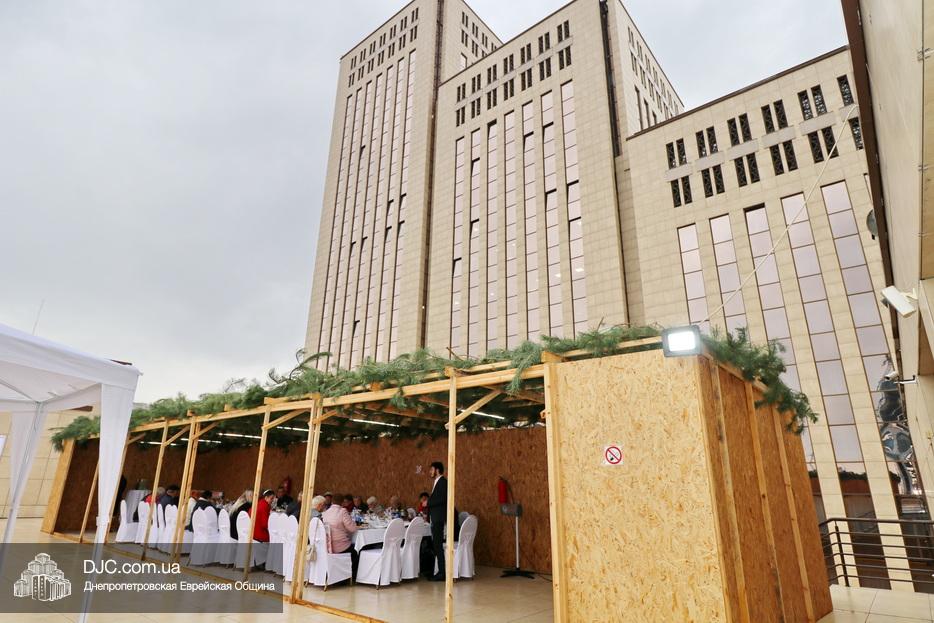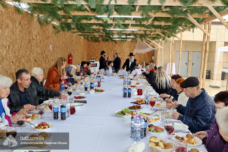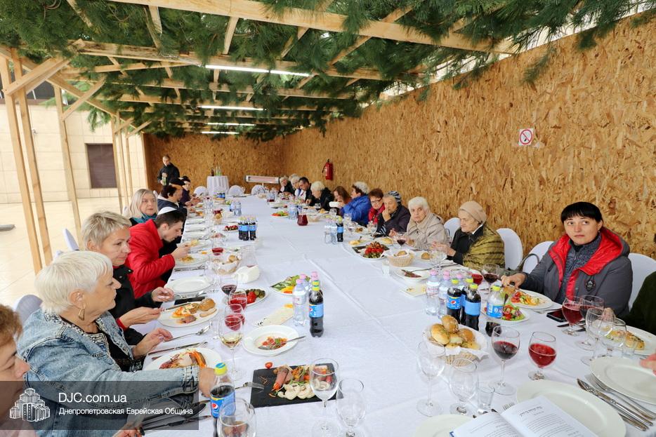 Встреча проходила на крыше главного зала торжеств Еврейской общины Днепра «Menorah Grand Palace» в главной сукке, где все смогли выполнить заповедь о «четырех растениях». Во время трапезы молодой раввин рассказал членам своей общины о празднике, значении и традициях Суккота.