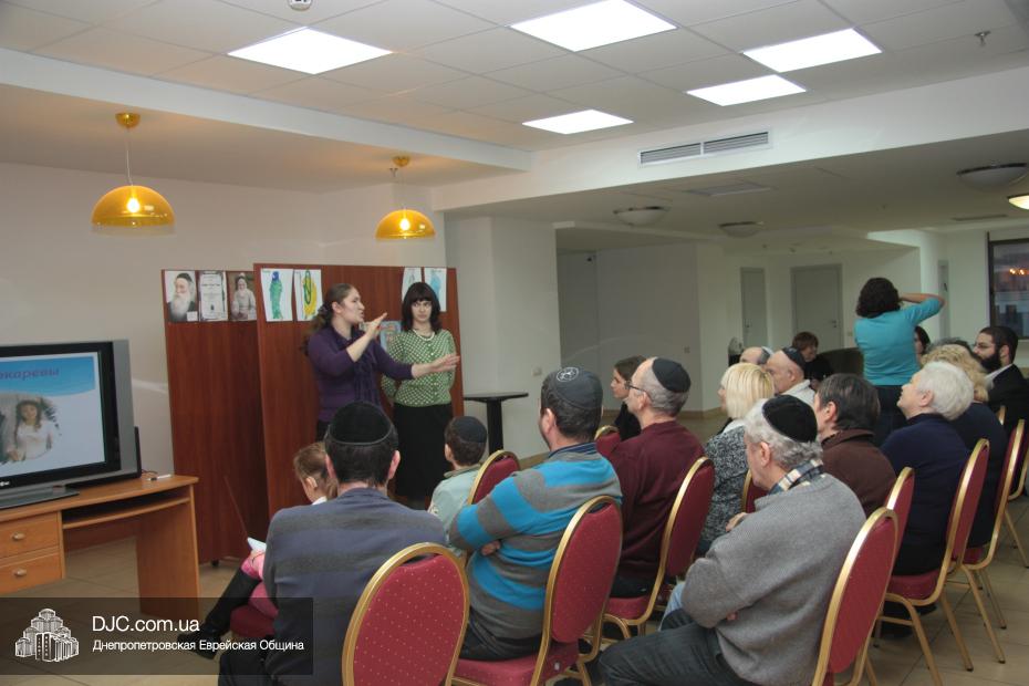 Затем присутствующим поведали о том, как сегодня создаются еврейские браки. Эта часть занятия была посвящена «шидуху» — традиционному еврейскому сватовству. Хана-Юдит объяснила участникам «Агават Исроэл», что предполагает понятие «шидух», а продолжила тему приглашенный гость — Мирьям Бокарева, руководитель программы «Махон» фонда «Шиурей Тора Любавич». Она рассказала о том, как проходил «шидух» с ее будущим мужем – Залманом Бокаревым, который сейчас является одним из известных лидеров еврейского возрождения в Днепропетровске — руководителем ведущей образовательной программы фонда «Шиурей Тора Любавич» — «СТАРС-770».