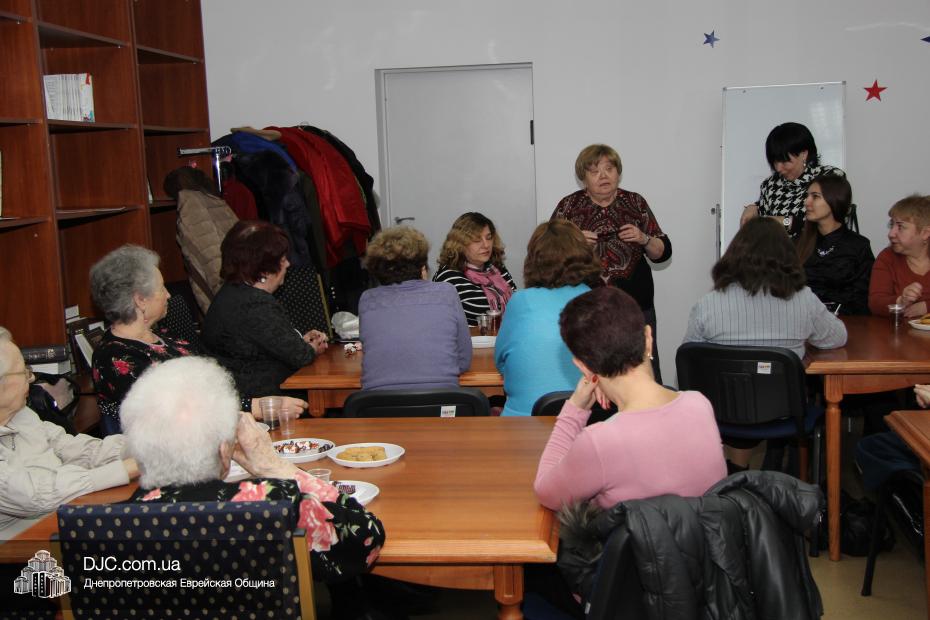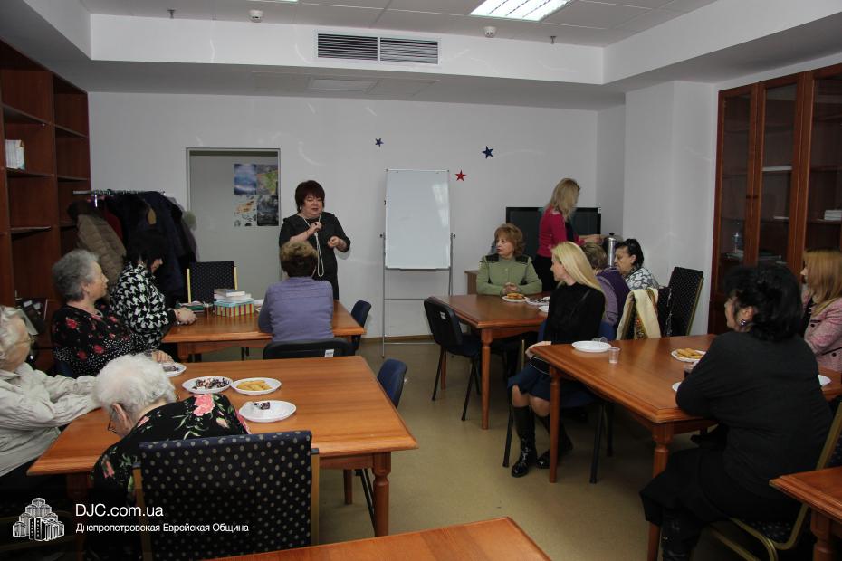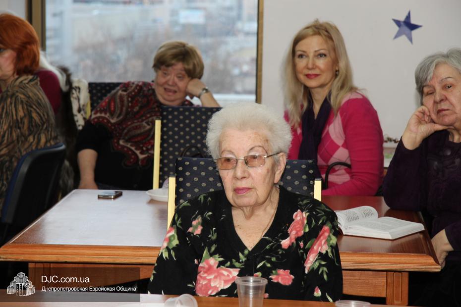 Заключительной частью заседания стало традиционное чествование именинниц. Руководительница клуба объявила имена участниц, отмечавших свои дни рождения в прошедшем месяце Шват. Наш сайт также присоединяется ко всем пожеланиям, прозвучавшим в адрес именинниц, и желает им всем крепкого здоровья, радости от детей и внуков и, как и полагается, до 120 как до 20!