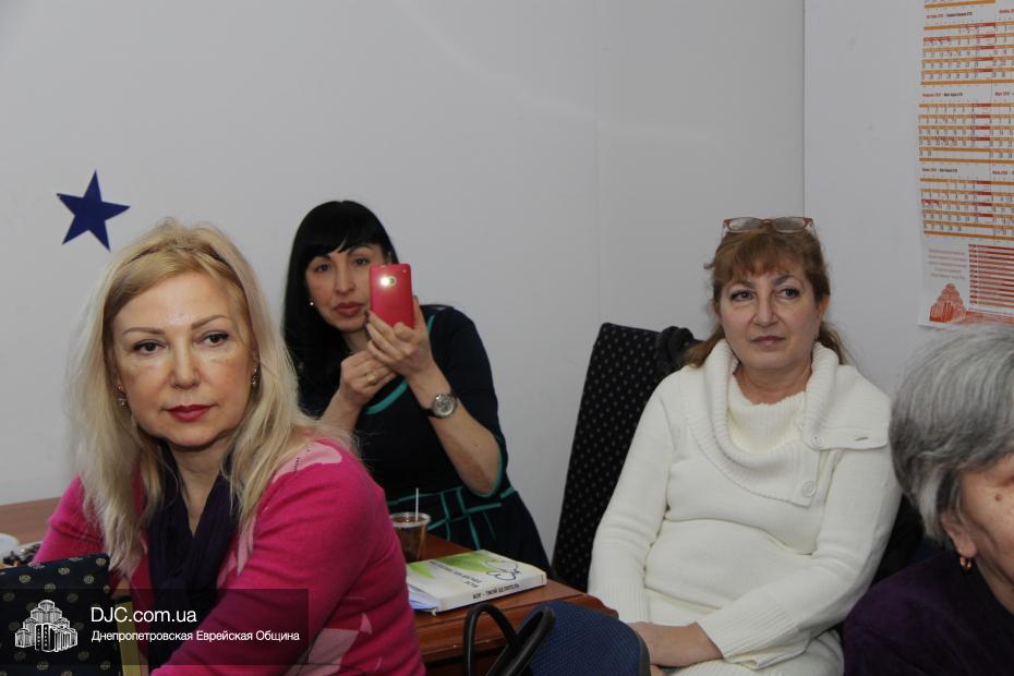 Затем слово было предоставлено Ривке (Римме Александровне) Марголиной, которая является бессменной ведущей одной из главных «страничек» в программе ежемесячных занятий в клубе – рубрики «Урок Торы». Римма Александровна представила рассказ о недельной главе «Ваякгель», как всегда, уделив подробное внимание отдельным, наиболее важным аспектам главы и их связи с сегодняшней реальностью.