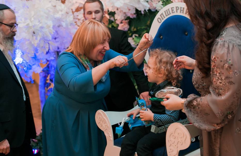 Честь начать церемонию стрижки была предоставлена Главному раввину Днепра и региона Шмуэлю Каминецкому. Затем отрезать прядь с головы малыша были приглашены почетные гости праздника. В этот день поздравить именинника и его родителей пришли их друзья и многие члены еврейской общины нашего города.