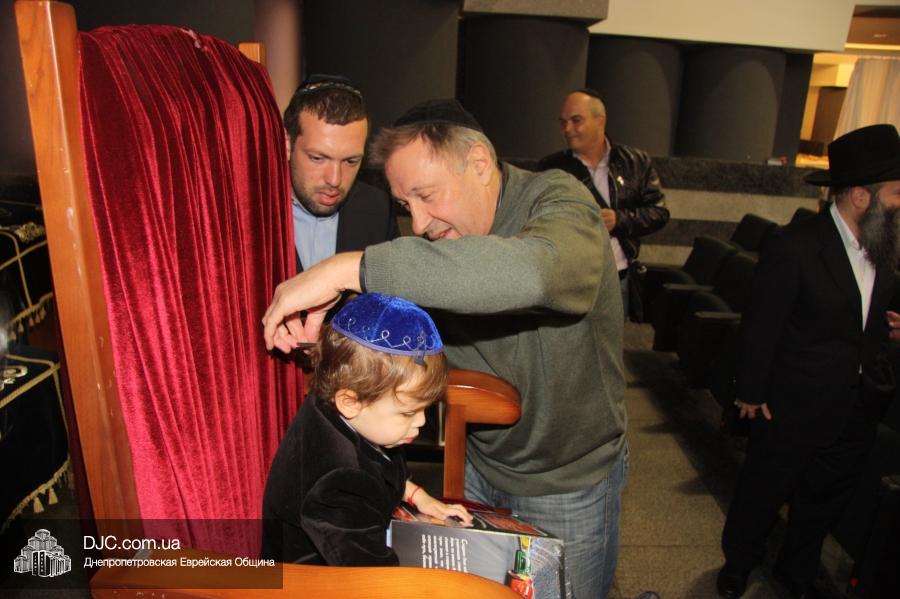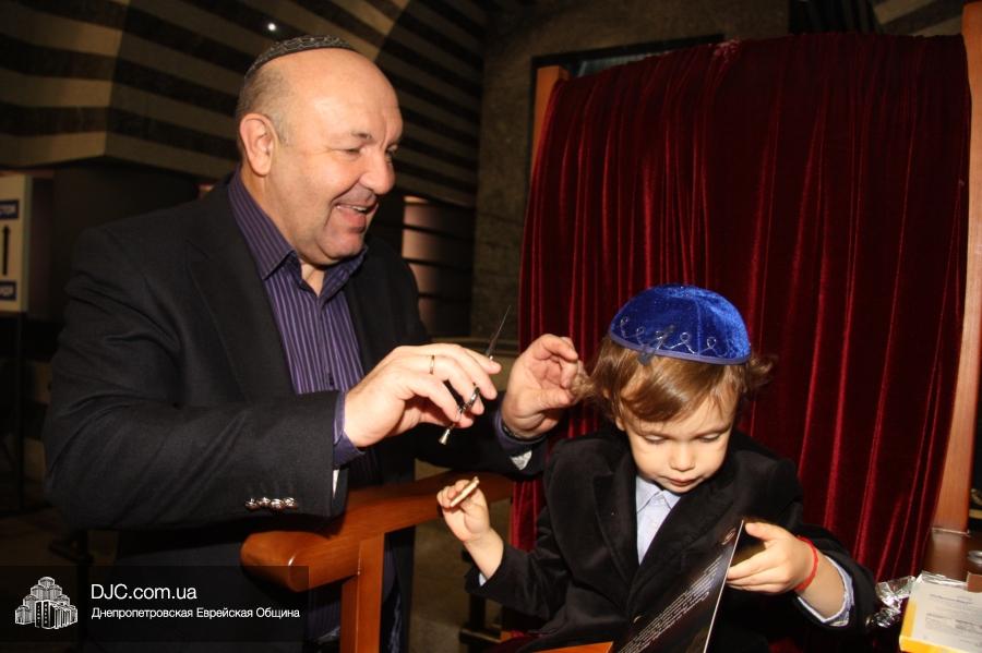В главном молитвенном зале Центральной синагоги «Золотая Роза» прошла церемония первой стрижки волос мальчика, достигшего трехлетнего возраста, которая называется «опшерниш», для Марка (Исаака) Грищева, сына Дмитрия и Яны Грищевых, внука члена Попечительского Совета Днепропетровской еврейской общины Федора Ивановича Грищева!