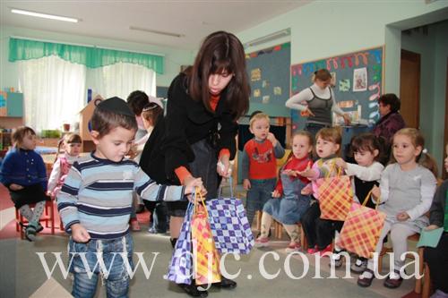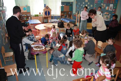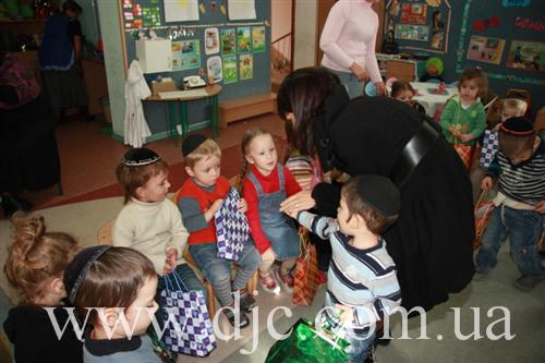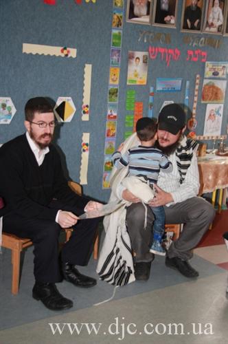 Затем ребенок попрощался с детьми своей младшей группы, которую он посещал до этого и вручил им подарки и, сопровождаемый пожеланиями «Мазл Тов!», отправился на занятия.