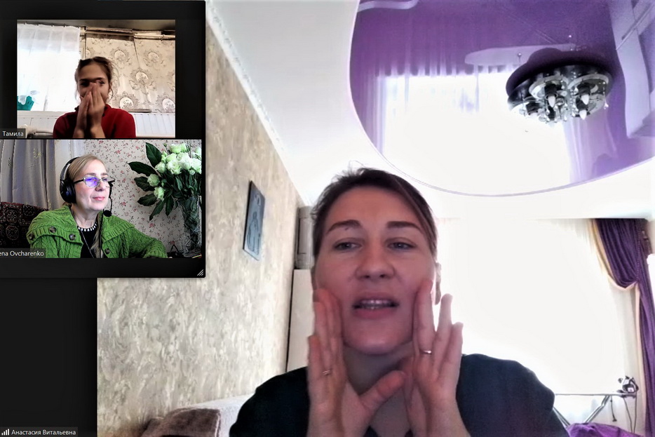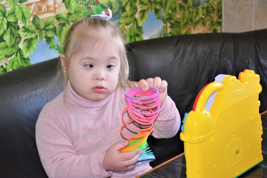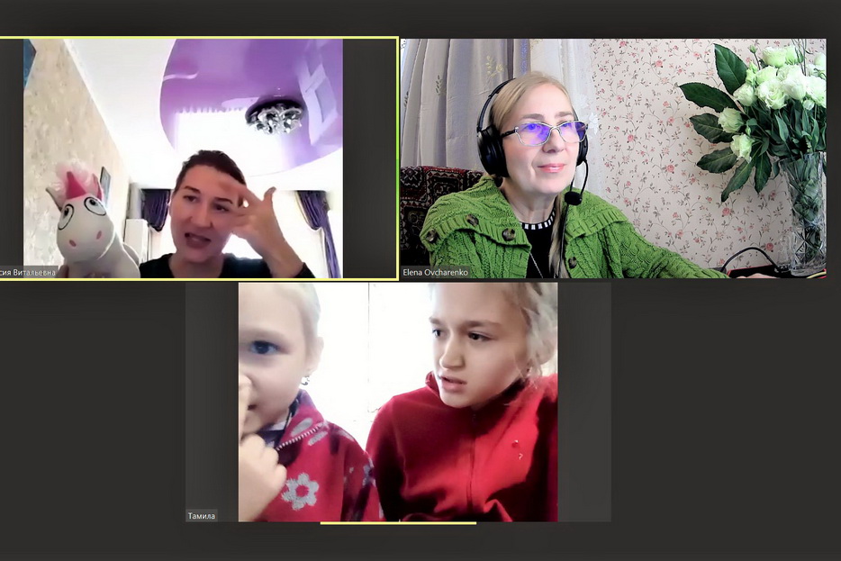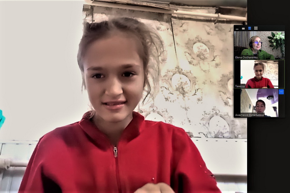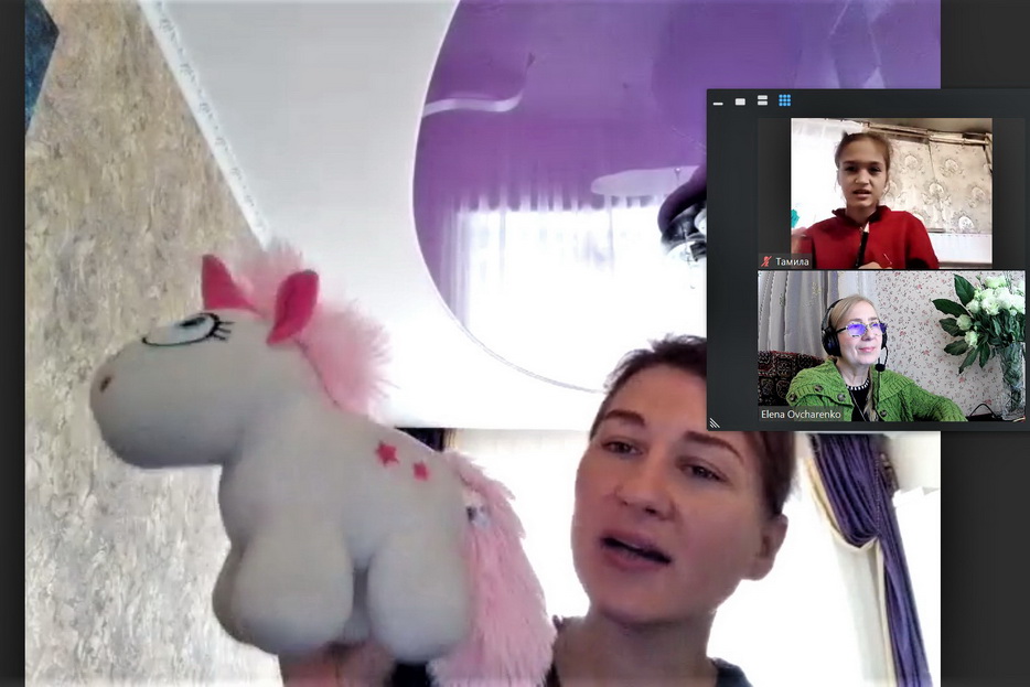 А музичний керівник Анастасія Бідкова провела індивідуальне заняття з Тамілою Р. Дівчинка відвідує дистанційні заняття у школі, але разом з молодшою сестричкою Веронікою намагається не пропускати уроки музики, які веде Анастасія Бідкова. Окрім прослуховування коротких п’єсок на різних музичних інструментах, Таміла із задоволенням співає та розучує нові пісеньки: «Дощик», «Крапельки», «Дзвіночок», «Барабан», «Пісенька про козочку» та інші. Музичні паузи на заняттях чергуються з дихальною та артикуляційною гімнастикою, вправами на розвиток моторики. Анастасія вміло використовує різноманітні атрибути – іграшки, олівці та інші предмети, щоб підтримати інтерес Таміли до навчання. Час уроку пролетів непомітно, і музичний керівник та її «асистент» – білий іграшковий єдиноріг – прощаються зі здібною та старанною ученицею».