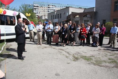 Затем были зажжены свечи на праздничном торте, который также имел вид автобуса, и Бостонская делегация осмотрела помещения ОРЦ, знакомясь с методиками и принципами его работы, многие из которых являются уникальными для Украины. Во время экскурсии неоднократно подчеркивалась ведущая роль общины Бостона в работе «Маале» и, прежде всего, организаций CJP и JCRC.