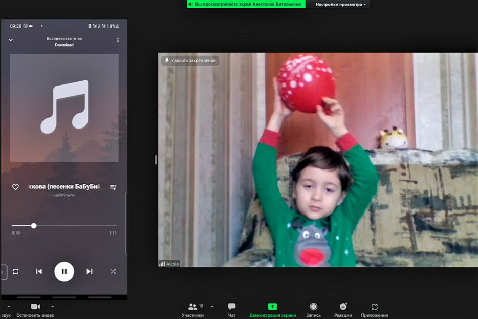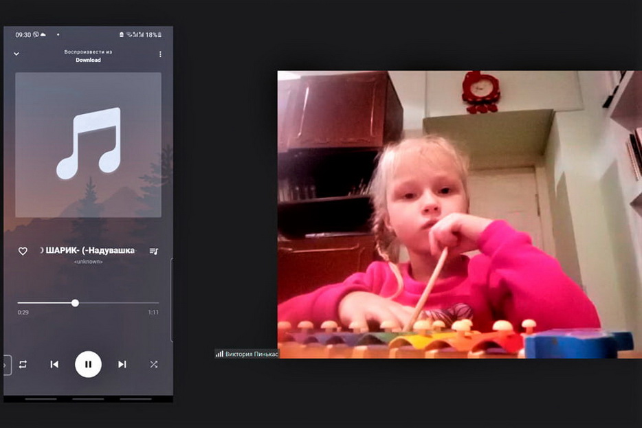 Также у нас проводятся и музыкальные занятия, которые ведет в ОРЦ Анастасия Бидкова, дети всегда с радостью их посещают. Ведь педагог открывает им не только мир чудесной музыки, но и развивает их эстетический вкус, побуждает к творчеству. На дистанционных занятиях Анастасия Бидкова умело использует методику «элементарного музицирования» немецкого педагога Карла Орфа под названием «Шульверк». Педагог тщательно готовится, используя не только цифровые аудио- и визуальные средства, но и предметы – игрушки, надувные шары, яркие цветные шарфы. Во время занятия Анастасия непрерывно двигается сама и вовлекает в движение детей – мимическое и пантомимическое. И все это под прелестную музыку! Такие занятия имеют огромное развивающее значение для наших учеников. Игра на детских музыкальных инструментах, пение и ритмическое движение вовлекают ребенка в музыкальную импровизацию, поощряя его инициативу и побуждая к творчеству».